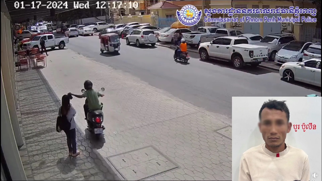 ជនសង្ស័យម្នាក់ ដែលជិះម៉ូតូធ្វើសកម្មភាពឆក់ទូរស័ព្ទនៅជិតវត្តភ្នំ ក្នុងខណ្ឌដូនពេញ ត្រូវបានកម្លាំងសមត្ថកិច្ចស្រាវជ្រាវឃាត់ខ្លួន