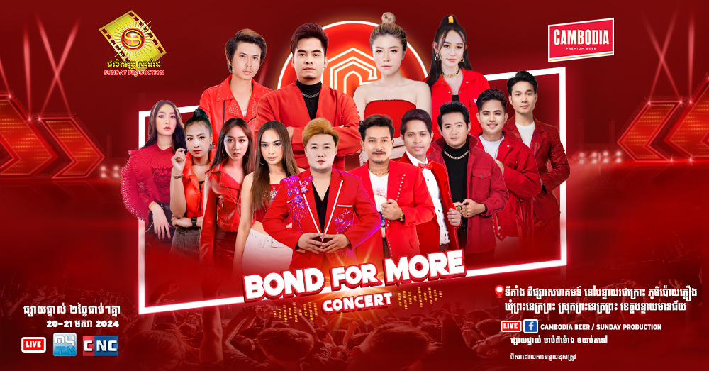 (ភ្នំពេញ)៖ មហាព្រឹត្តិការណ៍ប្រគំតន្ត្រីដ៏ធំសម្បើមប្រចាំប្រទេស CAMBODIA BEER BOND FOR MORE TOUR CONCERT និងមហាព្រឹត្តិការណ៍គុនខ្មែរ របស់ CAMBODIA BEER នឹងប្រព្រឹត្តឡើងនៅចុងសប្តាហ៍នេះដែលមានរយៈពេល ២ថ្ងៃ គឺថ្ងៃទី២០ និង២១ ខែមករា ឆ្នាំ២០២៤។