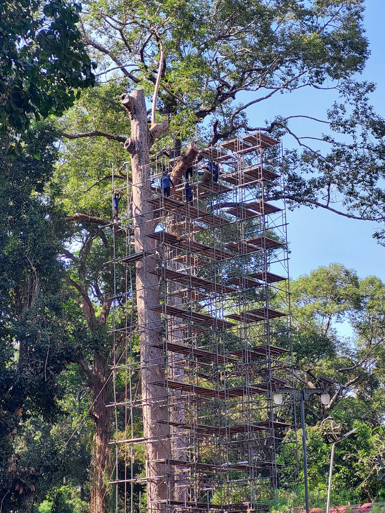 នាយកដ្ឋានគ្រប់គ្រងទឹក ព្រៃឈើ និងហេដ្ឋារចនាសម្ព័ន្ធ កាត់ក្រីមែកឈើដែលប៉ះពាល់ដល់សំណង់ផ្សេងៗក្នុងវត្តតាំងតុ និងដើម្បីការពារគ្រោះថ្នាក់នានា