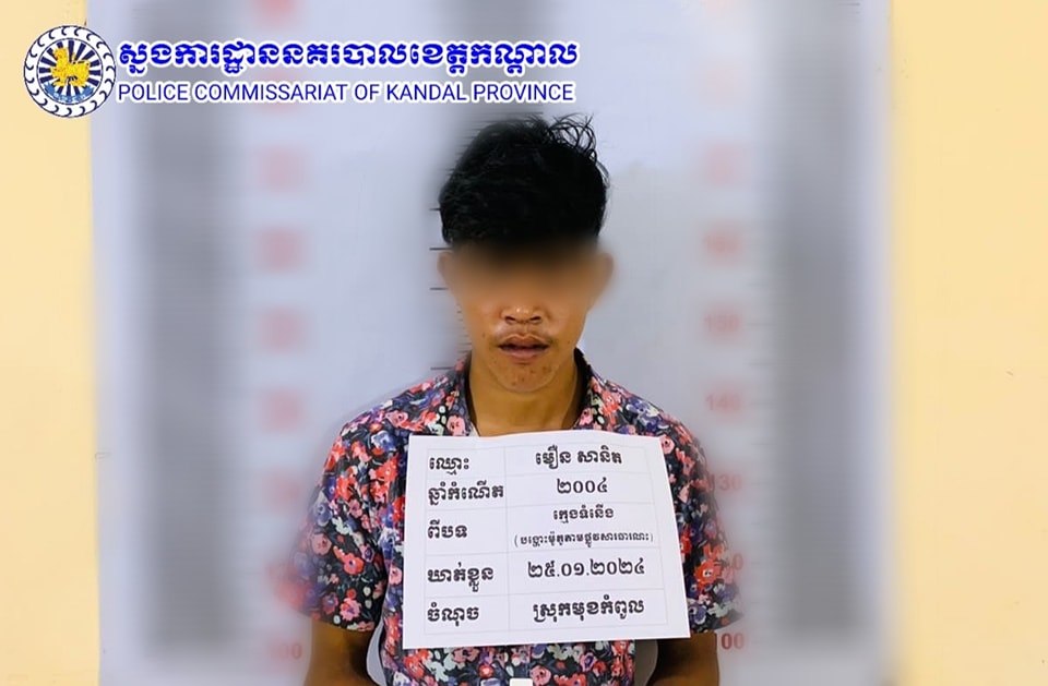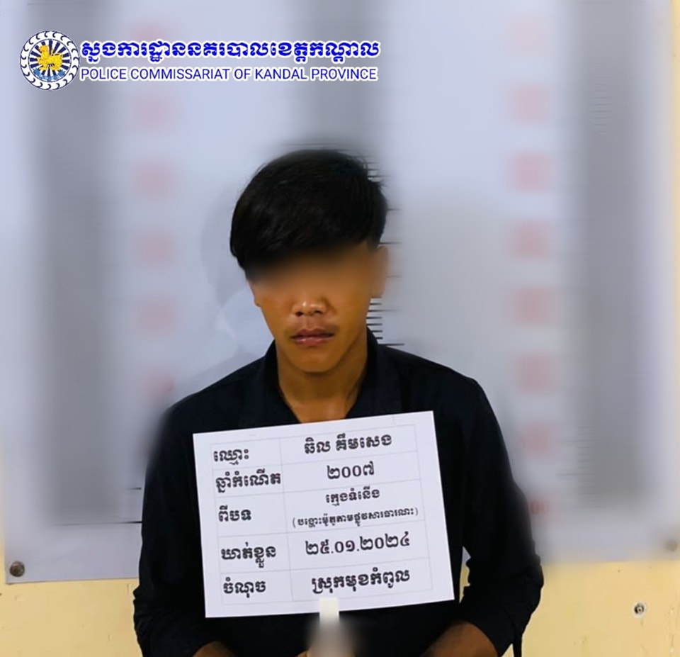 ខេត្តកណ្ដាល៖ យោងតាមការចុះផ្សាយរបស់ ស្នងការដ្ឋាននគរបាលខេត្តកណ្តាល បានឱ្យដឹងថា ដោយអនុវត្តតាមបទបញ្ជារបស់លោកឧត្តមសេនីយ៍ទោ ឈឿន សុចិត្ត ស្នងការនគរបាលខេត្តកណ្តាល នៅថ្ងៃព្រហស្បតិ៍ ១៥កើត ខែបុស្ស ឆ្នាំថោះ បញ្ចស័ក ព.ស.២៥៦៧ ត្រូវនឹងថ្ងៃទី២៥ ខែមករា ឆ្នាំ២០២៤ កម្លាំងនគរបាលអធិការដ្ឋាននគរបាលស្រុកមុខកំពូល បានធ្វើការបង្ក្រាបករណី ក្មេងទំនើង(បង្ហោះម៉ូតូតាមផ្លូវសាធារណៈ) កើតហេតុនៅថ្ងៃទី២៥ ខែមករា ឆ្នាំ២០២៤ វេលាម៉ោង២០៖៣០នាទី នៅចំណុច តាមបណ្តោយផ្លូវជាតិលេខ៦ ភូមិព្រែកជ្រៅ ឃុំរការកោងទី២ ស្រុកមុខកំពូល ខេត្តកណ្តាល។