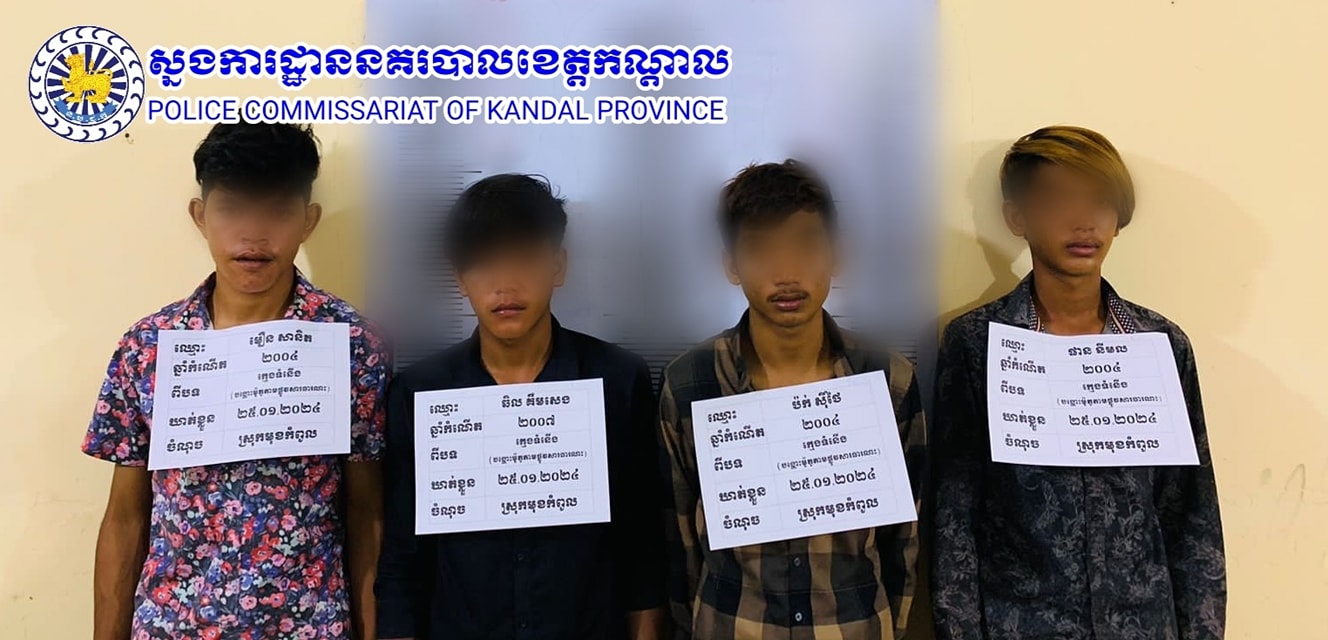 ក្រុមក្មេងទំនើងចំនួន០៤នាក់ ត្រូវបានឃាត់ខ្លួន មានដូចខាងក្រោម៖