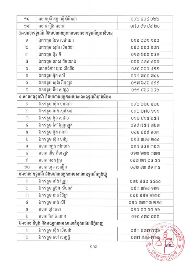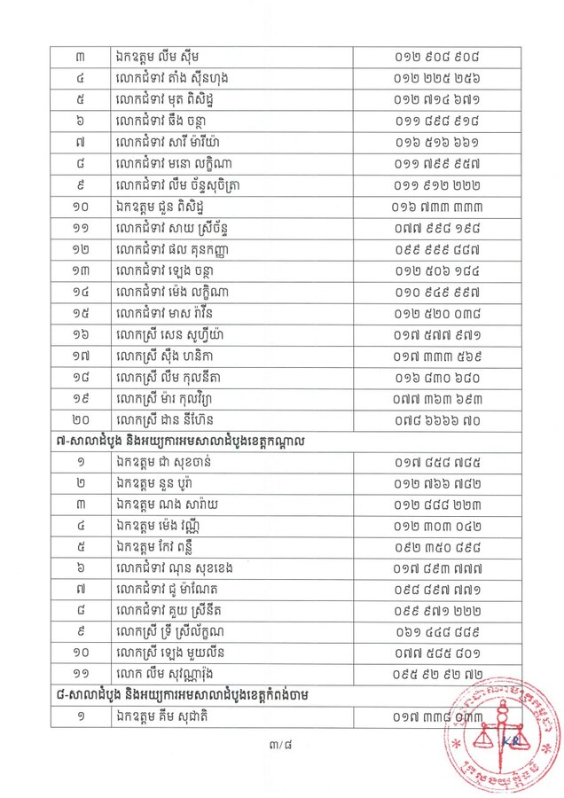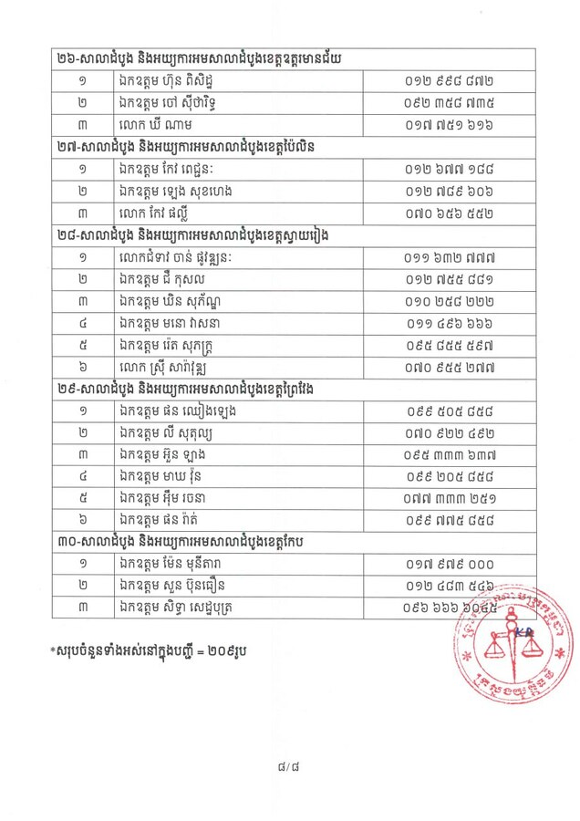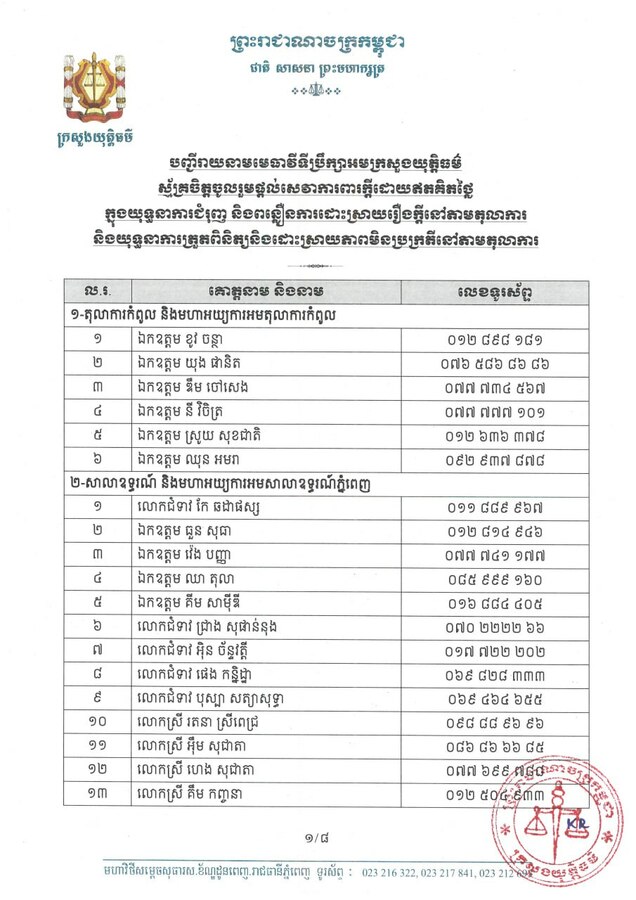 ក្រសួងយុត្តិធម៌ បង្ហាញជូននូវបញ្ជីឈ្មោះមេធាវីទីប្រឹក្សាអមក្រសួងយុត្តិធម៌ស្ម័គ្រចិត្ត ដែលផ្តល់សេវាការពារក្តីដោយឥតគិតថ្លៃ