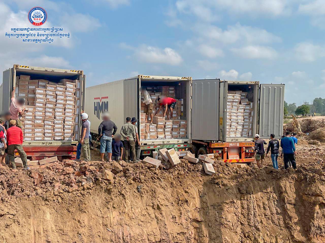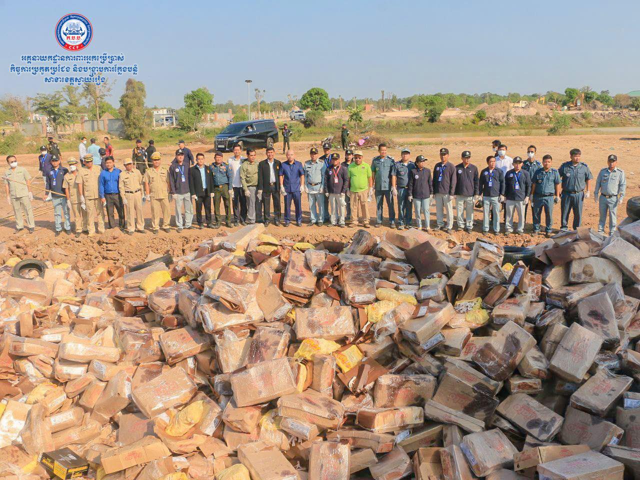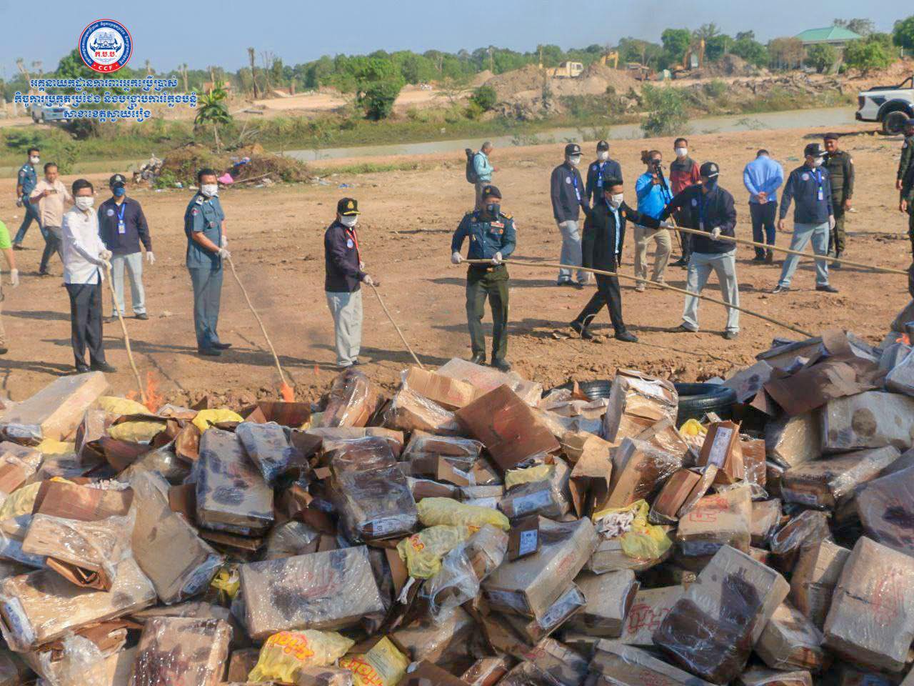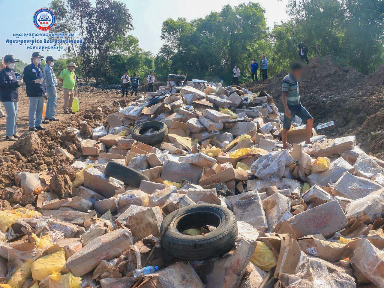 ជើងមាន់បង្កកខូចគុណភាពប្រមាណជាង ១០២តោន ត្រូវបានសមត្ថកិច្ចជំនាញខេត្តស្វាយរៀង ធ្វើការដុតកម្ទេចចោល