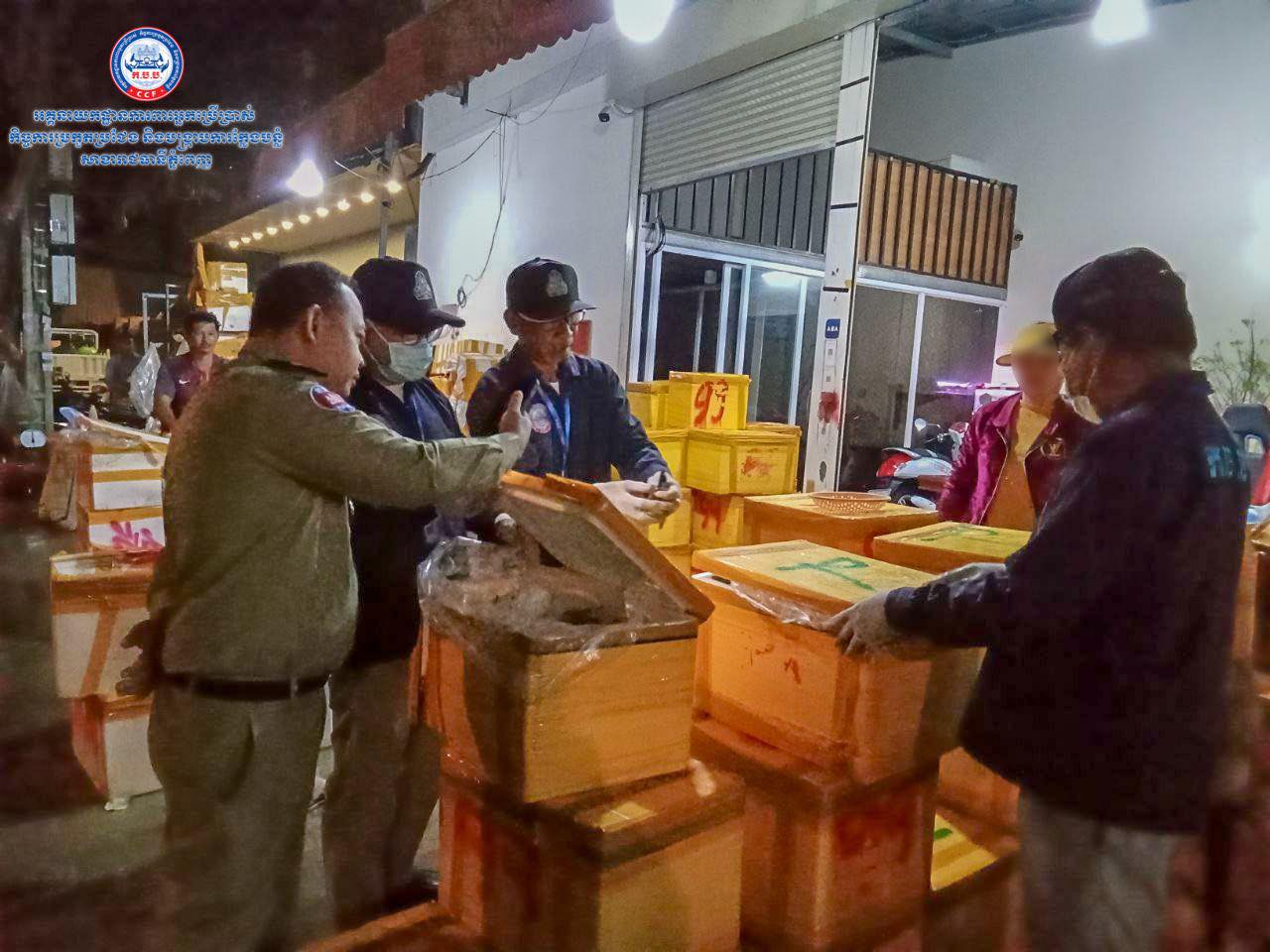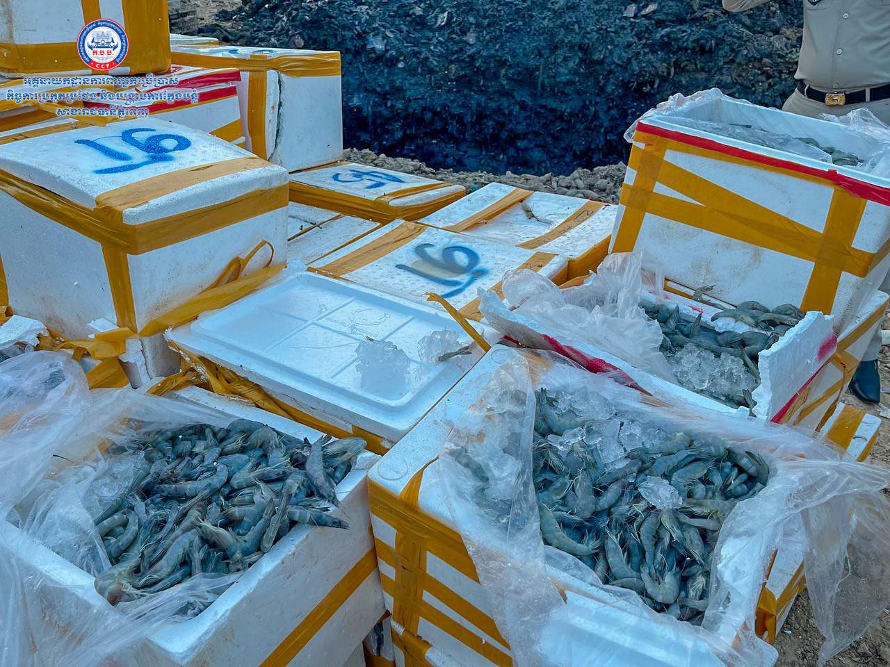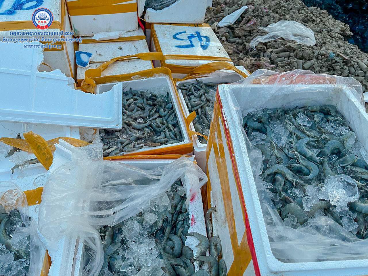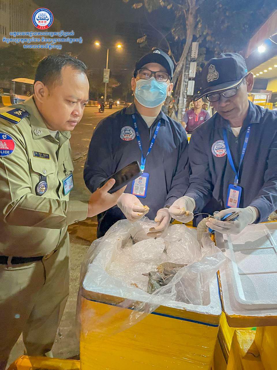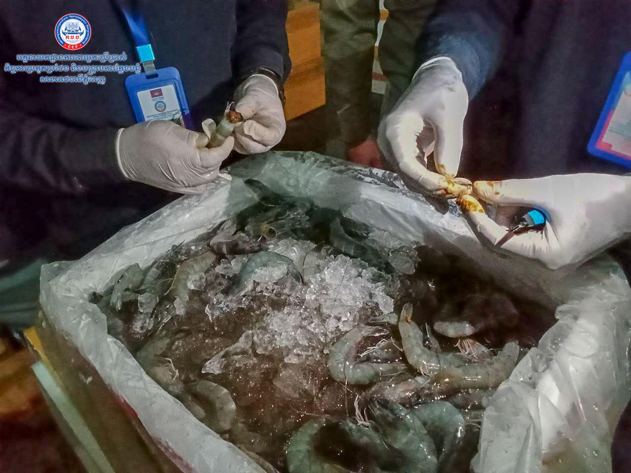 មន្ត្រីជំនាញ«ក.ប.ប.» រកឃើញបង្គាមានចាក់ចាហួយប្រមាណជាង ៤តោន នៅទីតាំងលក់គ្រឿងសមុទ្រ តំបន់ត្រឡោកបែក