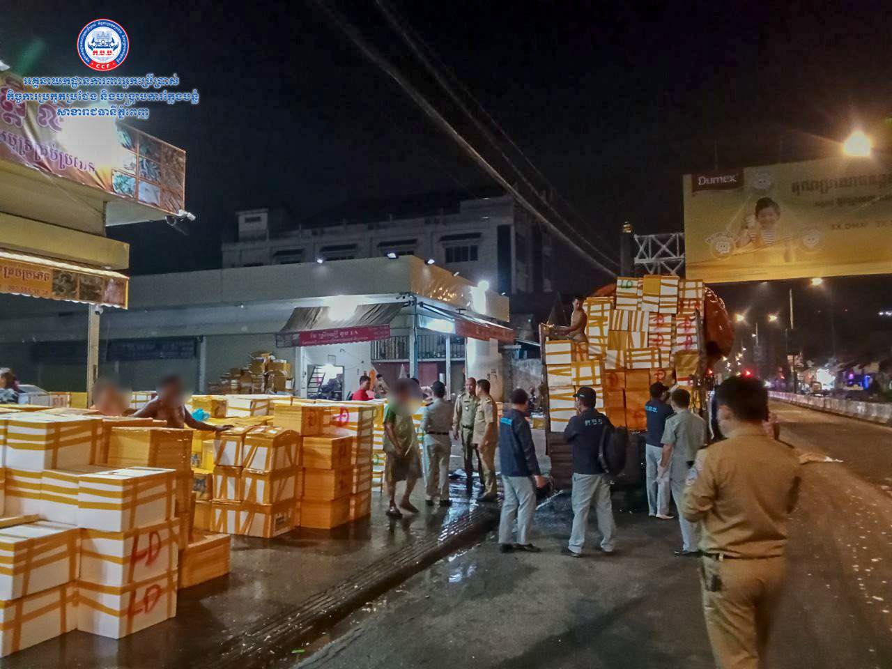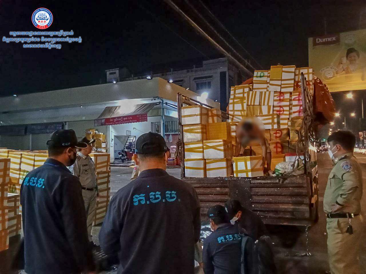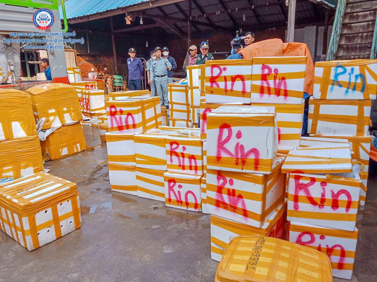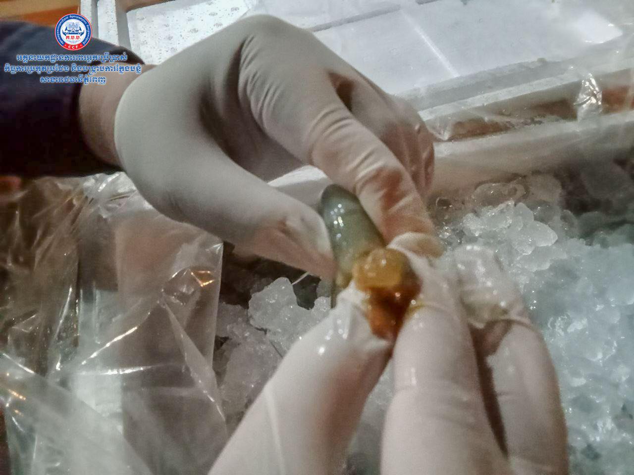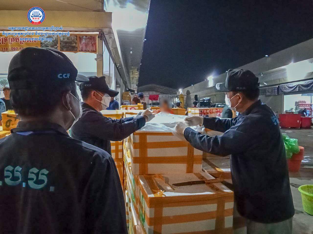 មន្ត្រីជំនាញ«ក.ប.ប.» រកឃើញបង្គាមានចាក់ចាហួយប្រមាណជាង ៤តោន នៅទីតាំងលក់គ្រឿងសមុទ្រ តំបន់ត្រឡោកបែក