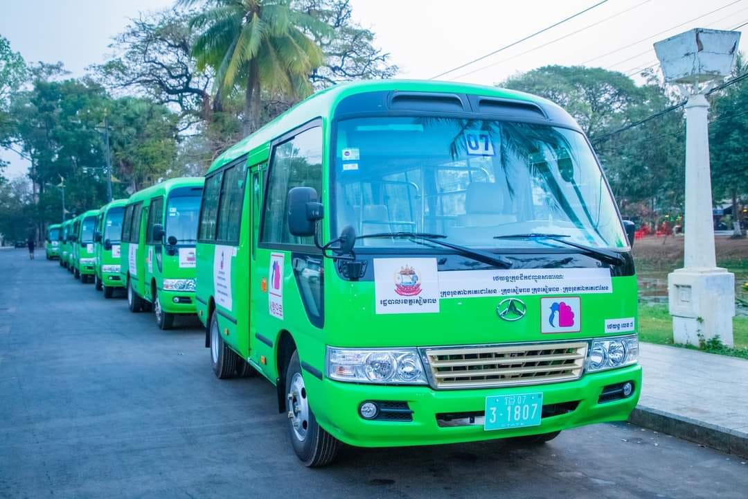 សូមជម្រាបថា រាជរដ្ឋាភិបាលកម្ពុជា បានផ្តល់រថយន្តក្រុង ចំនួន៥០គ្រឿង ដល់រដ្ឋបាលខេត្តសៀមរាប សម្រាប់ដឹកអ្នកដំណើរទៅមកដោយឥតគិតថ្លៃរវាងក្រុងសៀមរាប និងក្រុងរុនតាឯកតេជោសែន ហើយបន្ទាប់ទៀត រដ្ឋបាលខេត្តសៀមរាប ក៏គ្រោងនឹងពង្រីកសេវាកម្មនេះ ទៅកាន់តំបន់ពាក់ស្នែង និងក្នុងក្រុងសៀមរាប ផងដែរ ៕