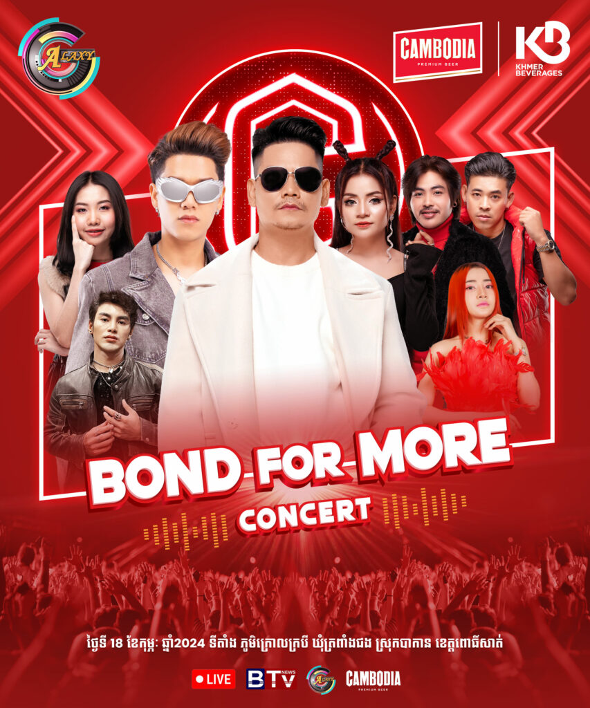 (ភ្នំពេញ)៖ មហាព្រឹត្តិការណ៍ប្រគំតន្ត្រីដ៏ធំសម្បើមប្រចាំប្រទេស CAMBODIA BEER BOND FOR MORE TOUR CONCERT និងមហាព្រឹត្តិការណ៍គុនខ្មែរ របស់ CAMBODIA BEER នឹងប្រព្រឹត្តឡើងនៅចុងសប្តាហ៍នេះដែលមានរយៈពេល ២ថ្ងៃ គឺថ្ងៃទី១៧ និង១៨ ខែកុម្ភៈ ឆ្នាំ២០២៤។