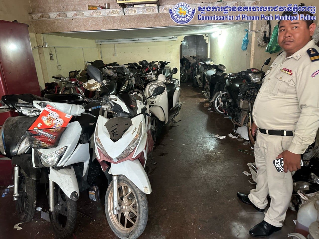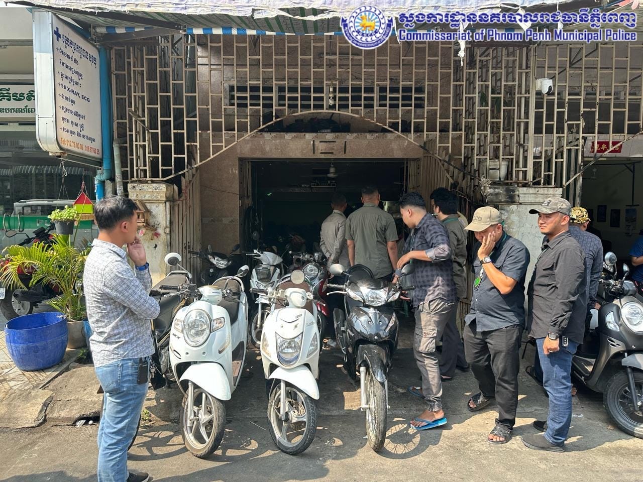 សមត្ថកិច្ច ចុះបង្ក្រាបទីតាំងទិញ-លក់ម៉ូតូខុសច្បាប់មួយកន្លែង ដកហូតម៉ូតូ ៣១គ្រឿង នៅខណ្ឌទួលគោក