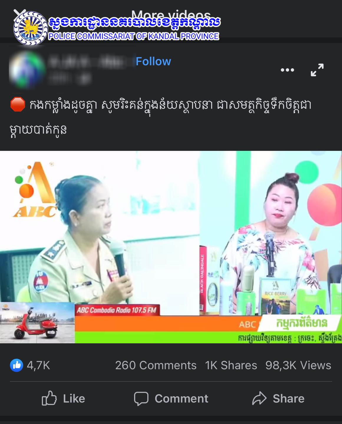 ប្រភព៖ ស្នងការដ្ឋាននគរបាលខេត្តកណ្តាល – Police Commissariat Of Kandal Province