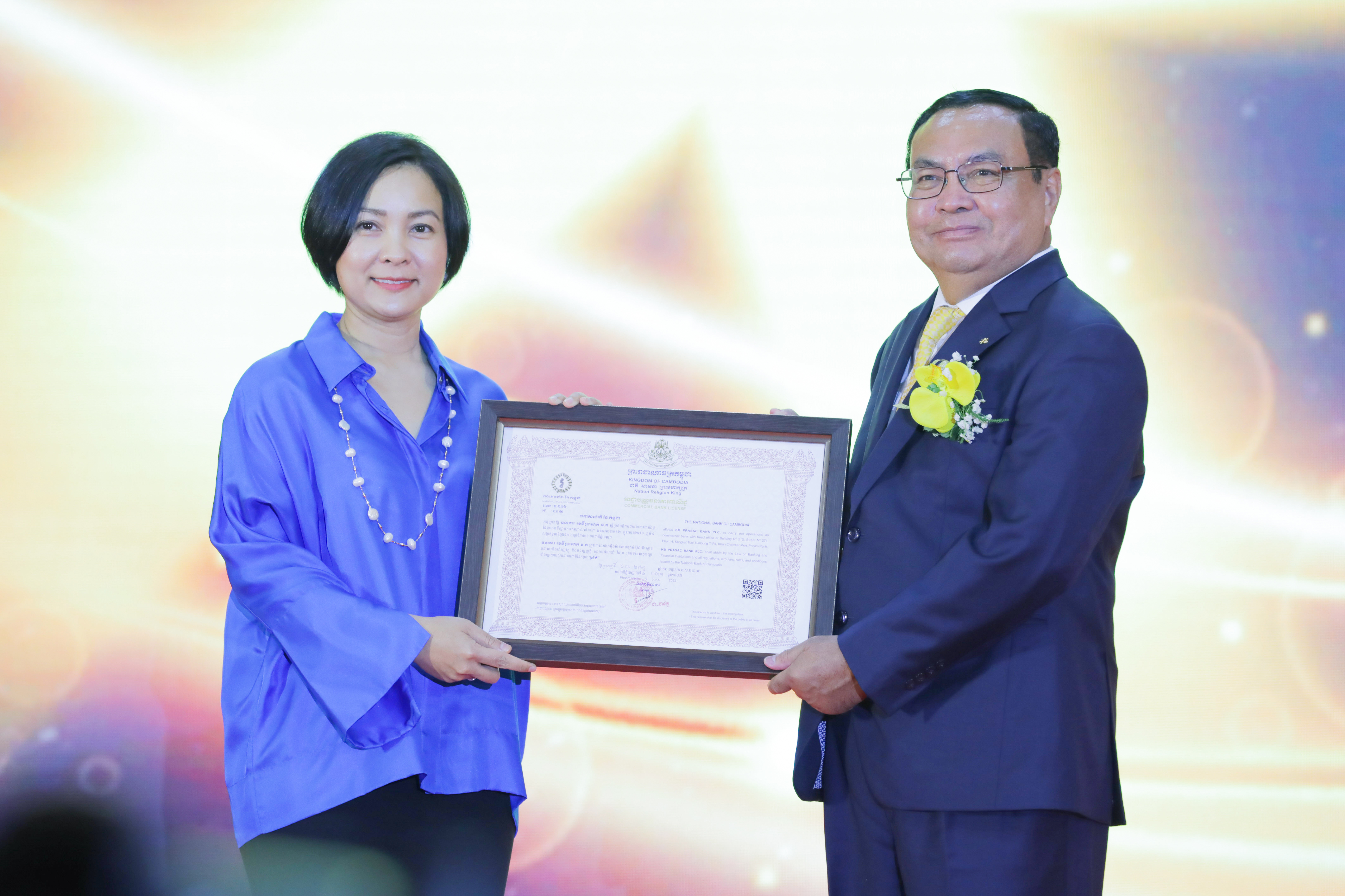 ថ្លែងក្នុងពិធីនេះ លោក Yang Jong Hee ប្រធាននាយកប្រតិបត្តិ KB Financial Group Inc. បានលើកឡើងពីសារៈសំខាន់នៃការពង្រឹងទំនាក់ទំនងរវាងប្រទេសកូរ៉េ និងកម្ពុជា ក្នុងភាពជាដៃគូសេដ្ឋកិច្ច ក្នុងរយៈកាលជាង 25 ឆ្នាំមកនេះ ដែលសម្រេចបានផ្លែផ្កាជាកិច្ចព្រមព្រៀងពាណិជ្ជកម្មសេរី (FTA) នៅឆ្នាំ 2022 ការកើនឡើងនៃការវិនិយោគ ឱកាសការងារសម្រាប់ប្រជាពលរដ្ឋកម្ពុជា និងការពង្រឹងធនធានមនុស្សតាមរយៈការទទួលនិស្សិតឱ្យទៅធ្វើការ និងសិក្សានៅប្រទេសកូរ៉េ។