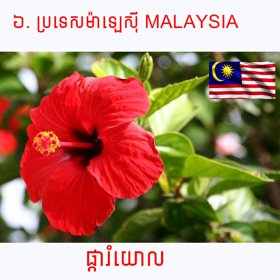 ៦. ផ្កាតំណាងជាតិរបស់ប្រទេសម៉ាឡេស៊ីគឺ ផ្ការំយោល