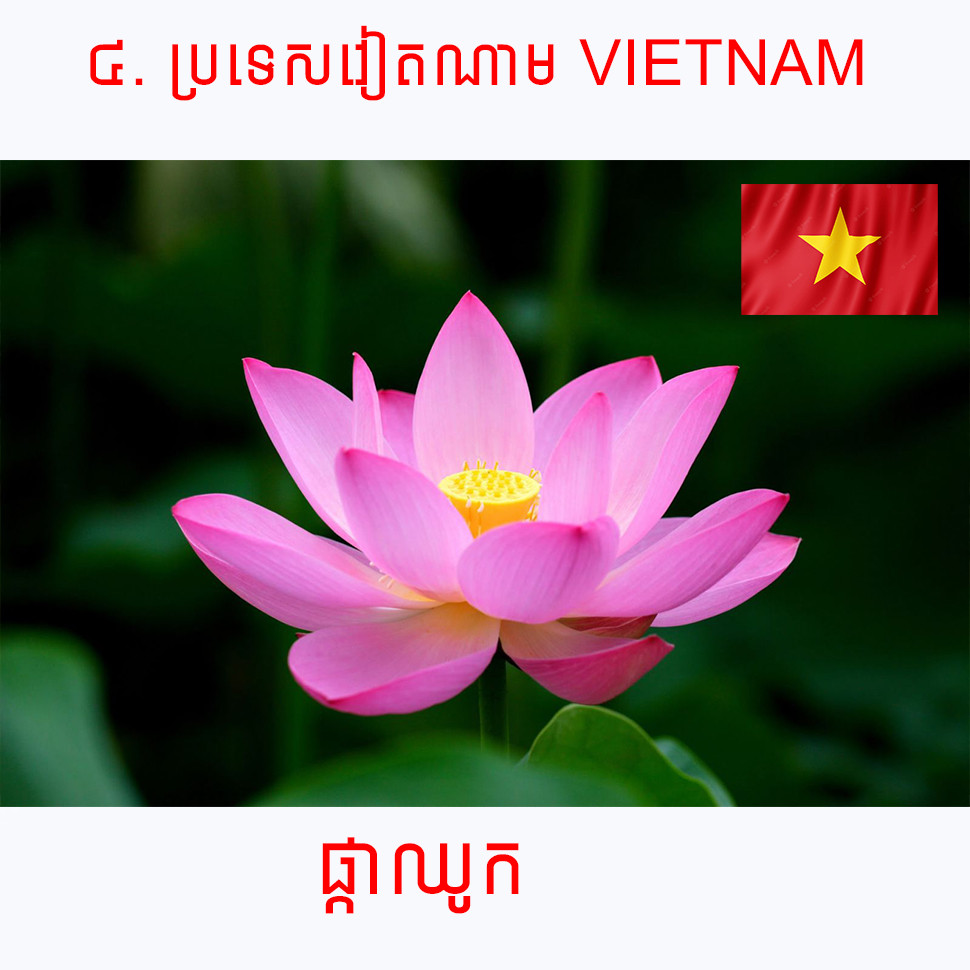 ៤. ផ្កាតំណាងជាតិរបស់ប្រទេសវៀតណាមគឺ ផ្កាឈូក