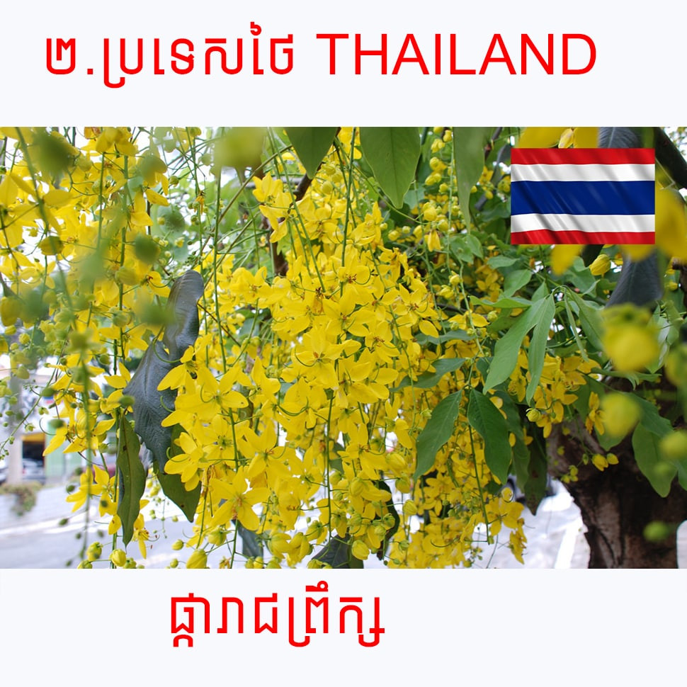 ២. ផ្កាតំណាងជាតិរបស់ប្រទេសថៃគឺ ផ្ការាជព្រឹក្ស