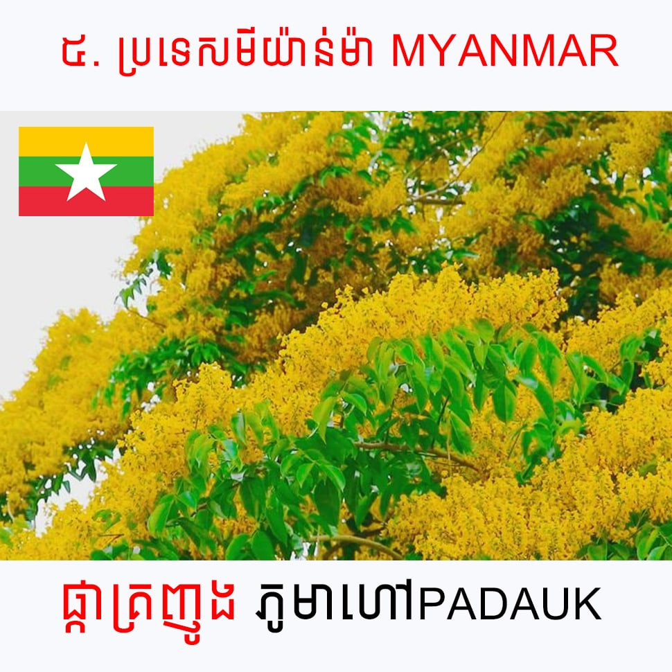 ៥. ផ្កាតំណាងជាតិរបស់ប្រទេសមីយ៉ានម៉ាគឺ ផ្កាគ្រញូង