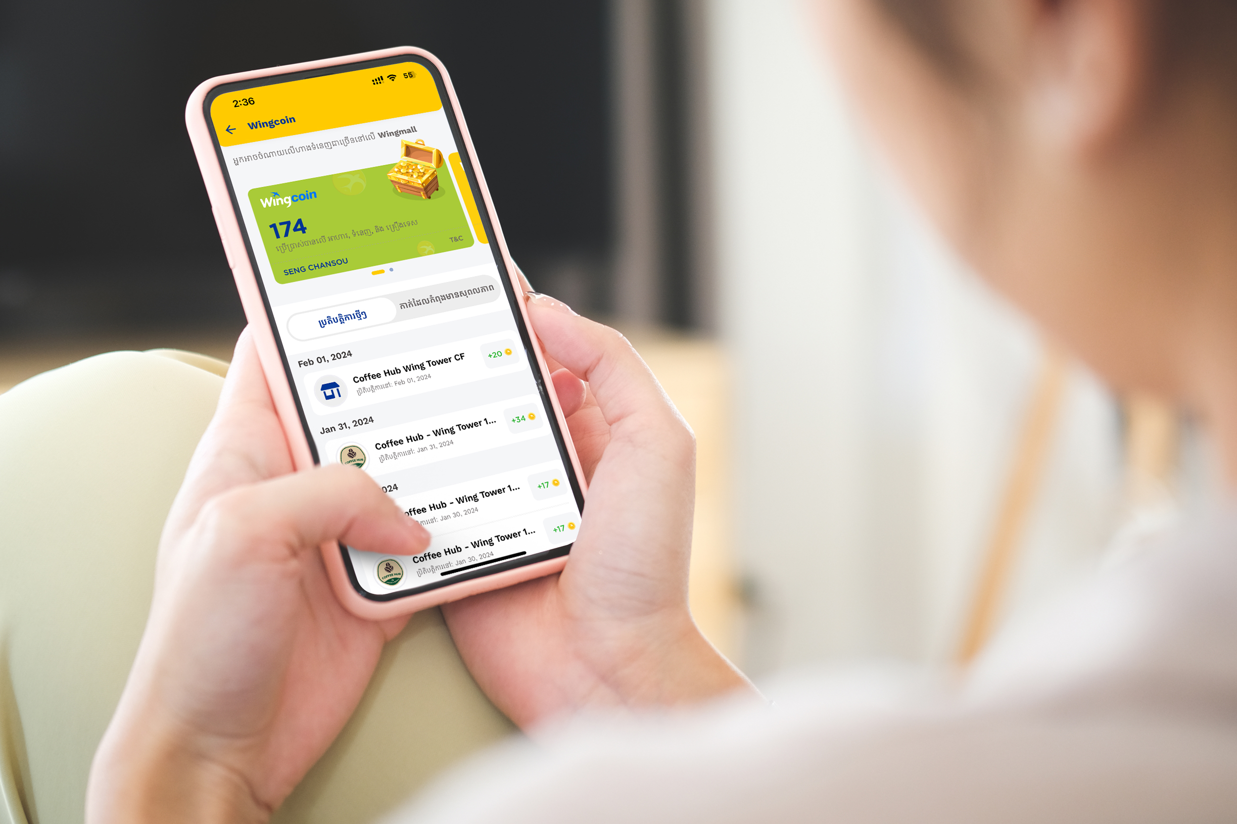 ឥឡូវនេះ អ្នកប្រើប្រាស់អេប Wing Bank ទាំងអស់នឹងទទួលបានរង្វាន់ជា Wingcoin ភ្លាមៗរាល់ពេលធ្វើប្រតិបត្តិការ ដែលជួយទៅដល់អតិថិជនសន្សំបានកាន់តែច្រើន ហើយអាចទិញទំនិញបានច្រើនជាងមុនថែមទៀតផង។
