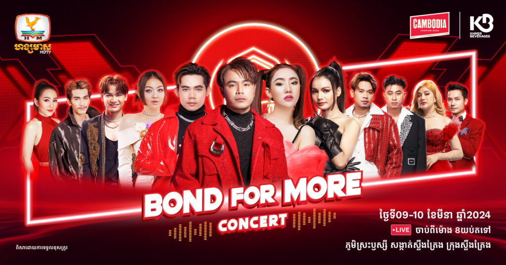 (ភ្នំពេញ)៖ មហាព្រឹត្តិការណ៍ប្រគំតន្ត្រីដ៏ធំសម្បើមប្រចាំប្រទេស CAMBODIA BEER BOND FOR MORE TOUR CONCERT និងមហាព្រឹត្តិការណ៍គុនខ្មែរ របស់ CAMBODIA BEER នឹងប្រព្រឹត្តឡើងនៅចុងសប្តាហ៍នេះដែលមានរយៈពេល ២ថ្ងៃ គឺថ្ងៃទី៩ និង១០ ខែមីនា ឆ្នាំ២០២៤។ មហាព្រឹត្តិការណ៍ទាំង ៣ នឹងរៀបចំឡើងនៅទីតាំងរួមមាន៖