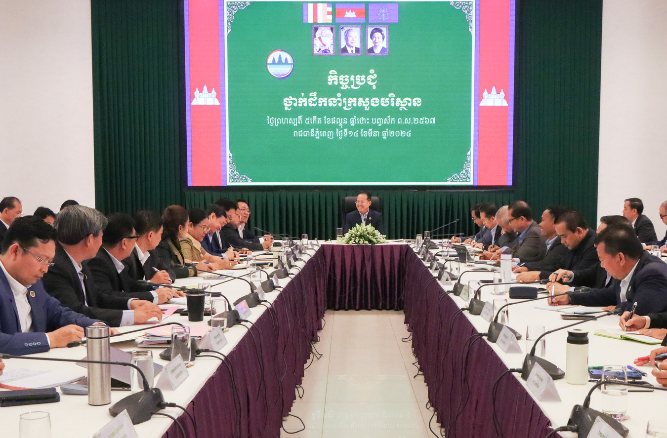 ក្នុងកិច្ចប្រជុំជាមួយថ្នាក់ដឹកនាំក្រសួងបរិស្ថាន ប្រធានមន្ទីរបរិស្ថានរាជធានី ខេត្ត និងនាយកតំបន់ការពារធម្មជាតិនៅទូទាំងប្រទេស នាថ្ងៃព្រហស្បតិ៍ ទី១៤ ខែមីនា ឆ្នាំ២០២៤ នាទីស្តីការក្រសួងបរិស្ថាន ឯកឧត្តមបណ្ឌិត អ៊ាង សុផល្លែត បានរលឹកឡើងវិញ ពីការពង្រឹងវិធានការទាំង៤ ដើម្បីគ្រប់គ្រងធនធានធម្មជាតិ និងអភិរក្សជីវៈចម្រុះ ឲ្យមានប្រសិទ្ធភាព និងការអភិវឌ្ឍដោយចីរភាព រួមមាន៖