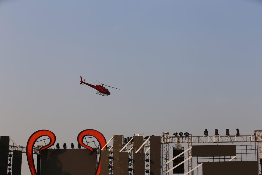 ឆ័ត្រយោងនាំសំណាងហោះ លើដានអាកាសបន្ទាបខ្លួនបន្តិចម្ដងៗ មកលើទីលានដីវាលកោះនរា ទាក់ភ្នែកទស្សនិកជនរងចាំទស្សនាផ្ទាល់យ៉ាងច្រើន ព្រោងព្រាតចោលភ្នែកសម្លឹងមើល។ នេះជាអ្វីដែលពិបាកបរិយាយណាស់ ប្រសិនបើអ្នកខកខានមិនបានចូលរួមមើលផ្ទាល់។ ពិតជាអស្ចារ្យដែលយើងជាកូនខ្មែរអាចធ្វើបានបង្កើតទស្សនីយភាពមួយ ដែលមិនធ្លាប់មានពីមុនមក។
