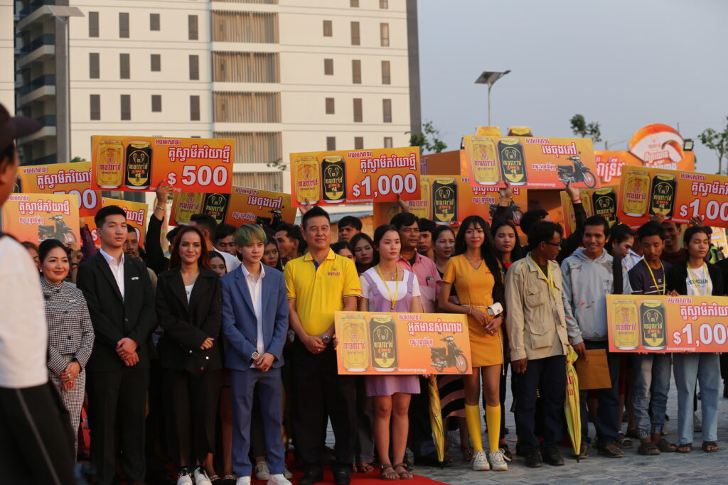 តាំងពីថ្ងៃរសៀលរហូតដល់ពេលល្ងាចនេះ មានភ្ញៀវចូលរួមយ៉ាងច្រើនរងចាំតម្រង់ជួរគ្នាចាំចូលទិញស្រាបៀរម៉ាទ្រីដជាមួយកម្មវិធីប្រូម៉ូសិនចុះថ្លៃយ៉ាងពិសេស លេងហ្គេមសប្បាយៗ ឈ្នះរង្វាន់ច្រើនសន្ធឹកសន្ធាប់ដូចជា ម៉ូតូហុងដា Dream ស៊េរីថ្មីលុយសុទ្ធ មាសសុទ្ធ និងស្រាបៀរម៉ាឌ្រីដរាប់លាននេះពីការគាស់អ៊ុតរង្វាន់ឈ្នះនៅក្រោមក្រវិលកំប៉ុង។