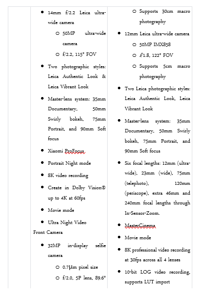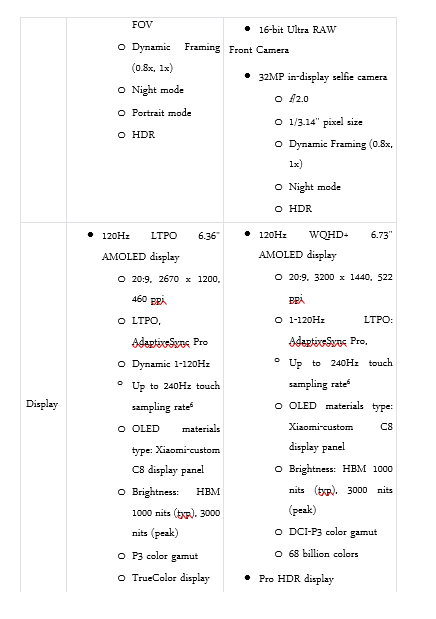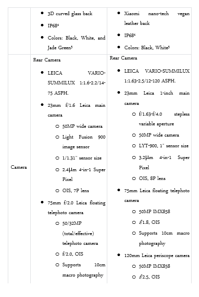 Xiaomi 14 និង Xiaomi 14 Ultra Quick Specs