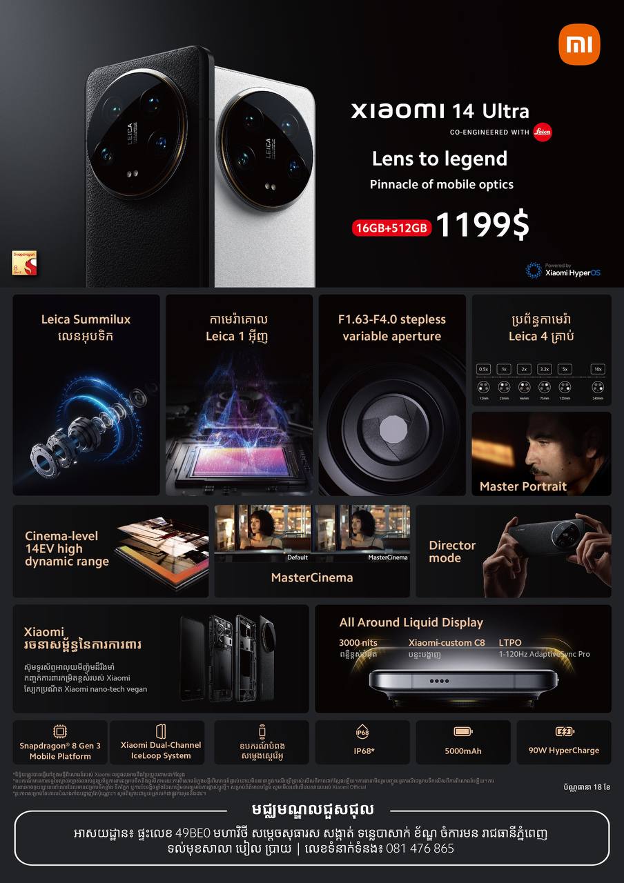 Xiaomi 14 Ultra៖ កំពូលរូបភាពដ៏មានឥទ្ធិពល ដំណើរការរហ័សល្អគ្មានគូរប្រៀប និងរចនបថប្រកបដោយភាពច្នៃប្រឌិតខ្ពស់