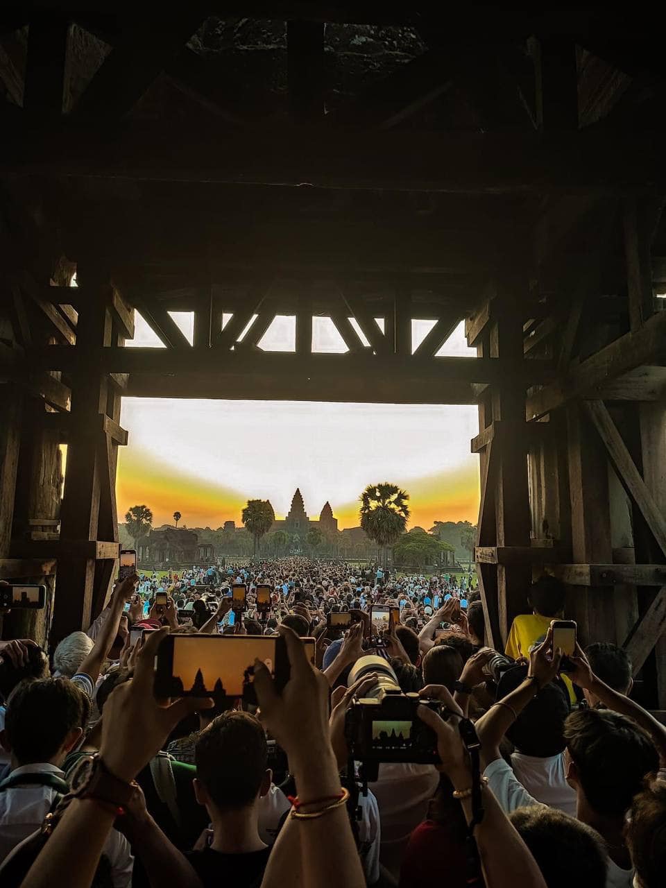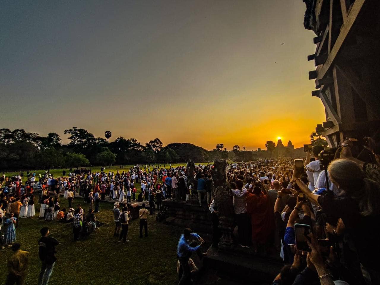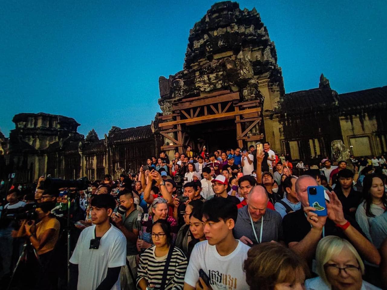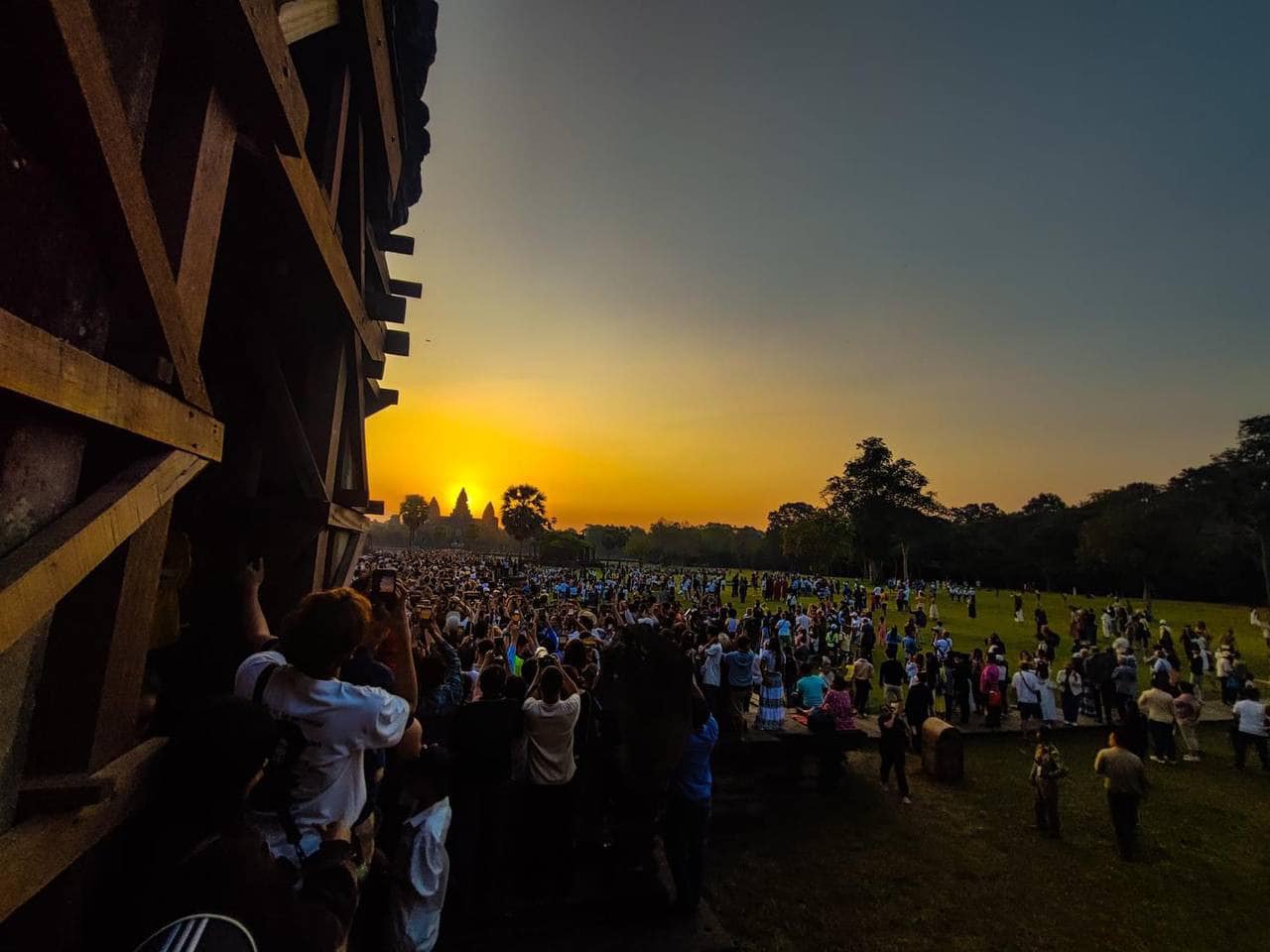 ទិដ្ឋភាពនៅមុខប្រាសាទអង្គរវត្ត នាព្រឹកថ្ងៃទី២១ ខែមីនា ឆ្នាំ២០២៤នេះ មានភ្ញៀវទេសចរជាតិ និងអន្តរជាតិយ៉ាងច្រើនកុះករ បានមកទស្សនាព្រឹត្តិការណ៍ពិសេសថ្ងៃរះចំកំពូលកណ្ដាលនៃប្រាសាទអង្គរវត្ត ៕ សូមទស្សនាវីដេអូខាងក្រោម៖