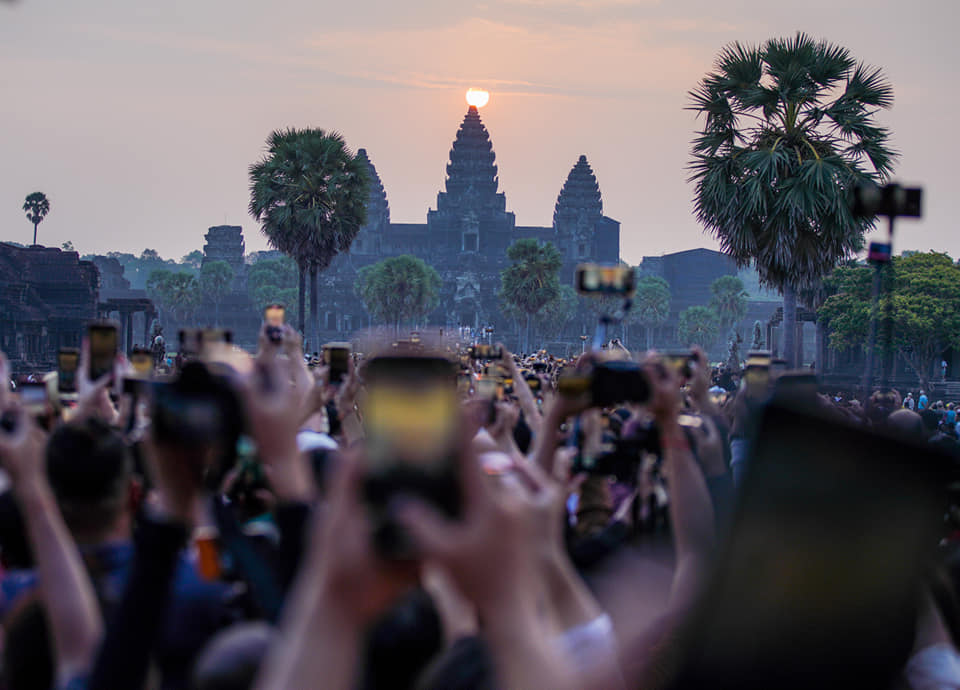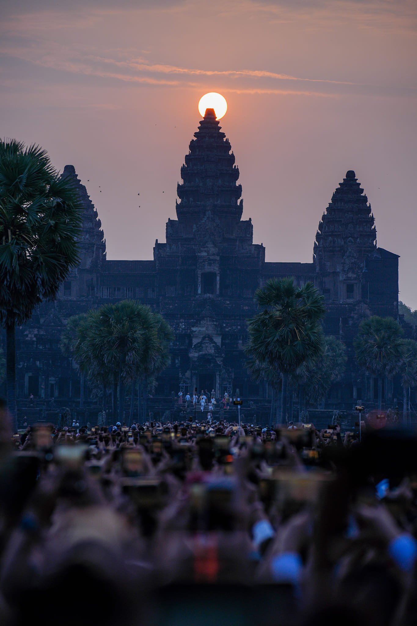 ខេត្តសៀមរាប៖ នៅព្រឹកថ្ងៃទី២២ ខែមីនា ឆ្នាំ២០២៤នេះ ព្រឹត្តិការណ៍«សមរាត្រី» ព្រះអាទិត្យរះចំកំពូលប្រាង្គកណ្ដាលប្រាសាទអង្គរវត្តយ៉ាងស្រស់ស្អាត បានបញ្ចេញពន្លឺយ៉ាងចិញ្ចាច ទាក់ទាញភ្ញៀវទេសចរជាតិ និងអន្តរជាតិជាច្រើនរាប់ម៉ឺននាក់ ក្រោកមកតាំងពីម៉ោង៥ព្រឹក ដើម្បីរង់ចាំទស្សនាព្រឹត្តិការណ៍ព្រះអាទិត្យរះឡើងកាត់តាមកំពូលកណ្តាល នៃប្រាសាទអង្គរវត្ត។