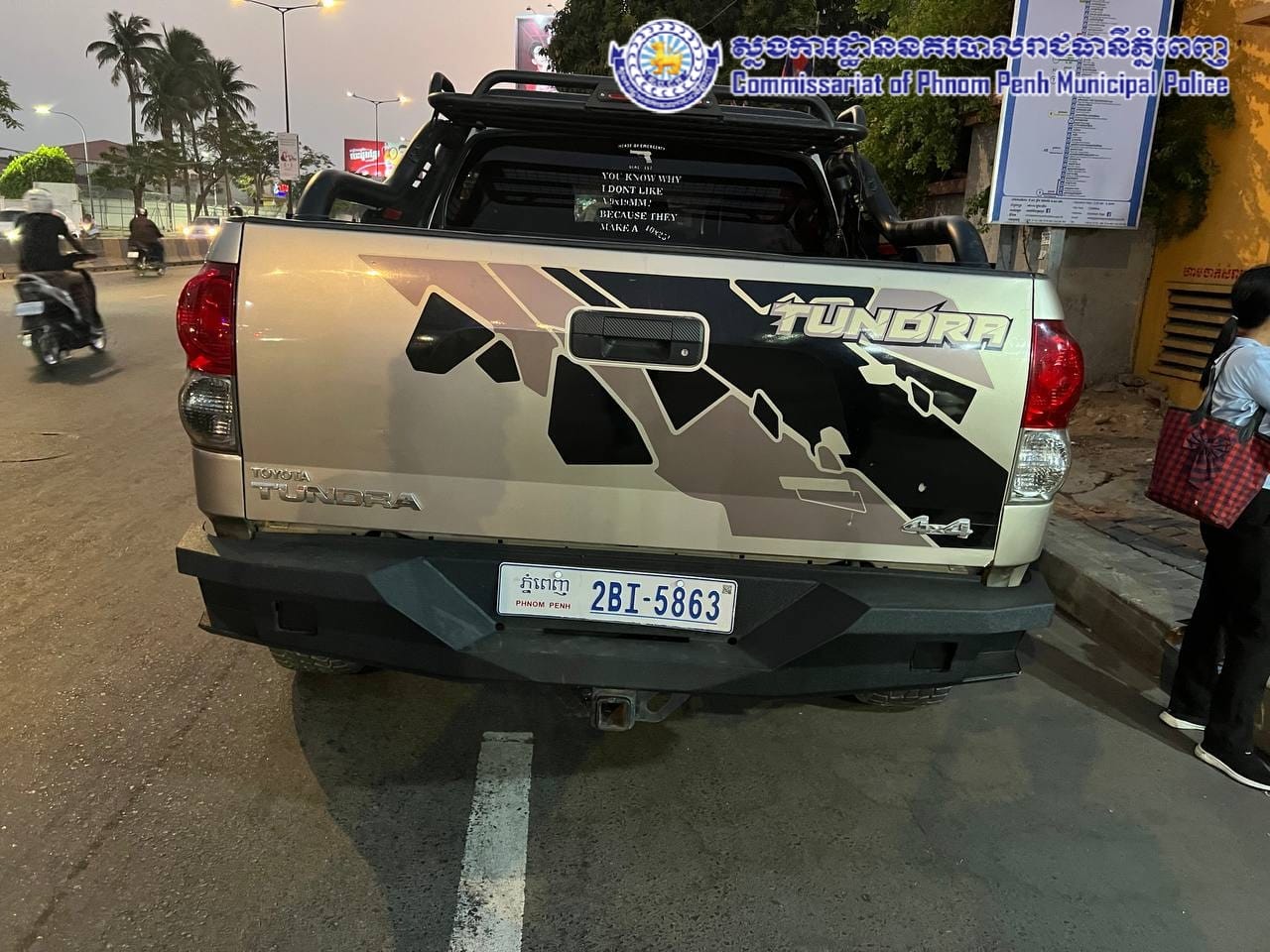 រាជធានីភ្នំពេញ៖ យោងតាមការចុះផ្សាយរបស់ ស្នងការដ្ឋាននគរបាលរាជធានីភ្នំពេញ បានឱ្យដឹងថា ម្ចាស់រថយន្ត Toyota Tundra បំពាក់អំពូលហ្វាកែច្នៃខុសលក្ខណៈបច្ចេកទេស បានចូលខ្លួនធ្វើកិច្ចសន្យា នៅអធិការដ្ឋាននគរបាលខណ្ឌពោធិ៍សែនជ័យ នៅល្ងាចថ្ងៃទី២៥ ខែមីនា ឆ្នាំ២០២៤។