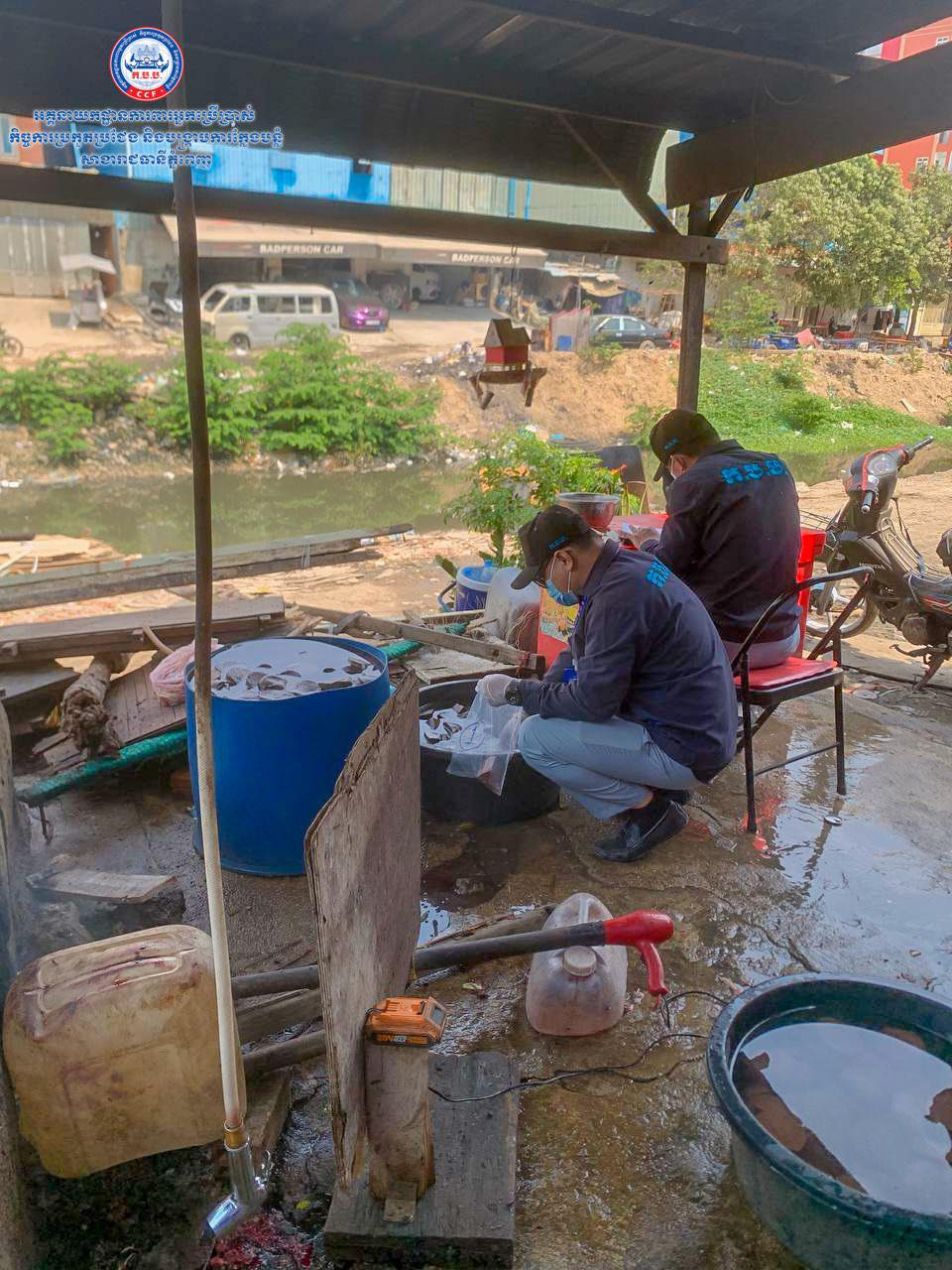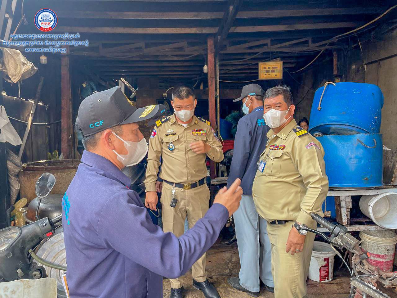 រាជធានីភ្នំពេញ៖ យោងតាមការចុះផ្សាយរបស់ អគ្គ.ការពារអ្នកប្រើប្រាស់ កិច្ចការប្រកួតប្រជែង និងបង្ក្រាបការក្លែងបន្លំ បានឱ្យដឹងថា ដោយអនុវត្តតាមអនុសាសន៍ណែនាំដ៏ខ្ពង់ខ្ពស់ពីលោកជំទាវរដ្ឋមន្ត្រីក្រសួងពាណិជ្ជកម្ម និងការចង្អុលបង្ហាញពីថ្នាក់ដឹកនាំនៃអគ្គនាយកដ្ឋាន ក.ប.ប. ក្នុងការការពារសុខុមាលភាពប្រជាពលរដ្ឋ សាខា ក.ប.ប. រាជធានីភ្នំពេញ សហការជាមួយអាជ្ញាធរមូលដ្ឋាន និងប៉ុស្តិ៍នគរបាលរដ្ឋបាលសង្កាត់បឹងសាឡាង ខណ្ឌទួលគោក បានចុះត្រួតពិនិត្យណែនាំ និងអប់រំ នៅទីតាំងផលិតឈាមជ្រូក និងសណ្តែកបណ្តុះចំនួន ២ទីតាំង ស្ថិតនៅភូមិ១៧ សង្កាត់បឹងសាឡាង ខណ្ឌទួលគោក រាជធានីភ្នំពេញ។