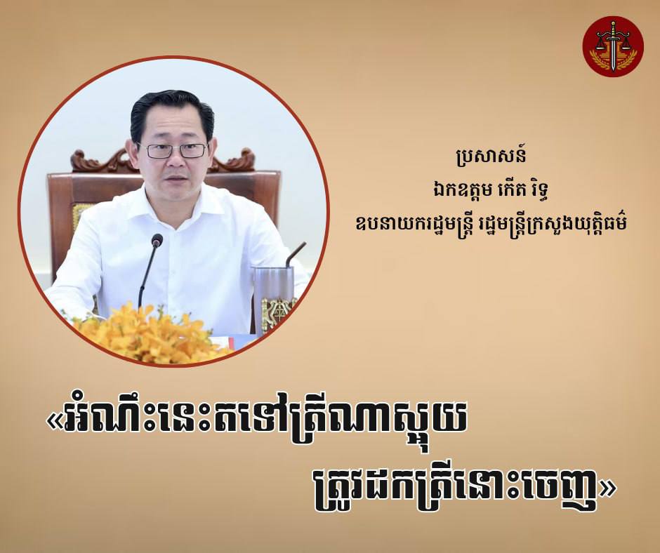 ការលើកឡើងរបស់ឯកឧត្តមឧបនាយករដ្ឋមន្រ្តី កើត រិទ្ធ រដ្ឋមន្ត្រីក្រសួងយុត្តិធម៌យ៉ាងដូច្នេះ គឺជាការឯកភាពជាមួយការលើកឡើងរបស់ប្រធានតុលាការកំពូលឯកឧត្តម ជីវ កេង ដែលចូលរួមក្នុងឱកាសក្រសួងយុត្តិធម៌បើកមហាសន្និបាតបូកសរុបលទ្ធផលការងារវិស័យយុត្តិធម៌ទូទាំងប្រទេសឆ្នាំ២០២៣។