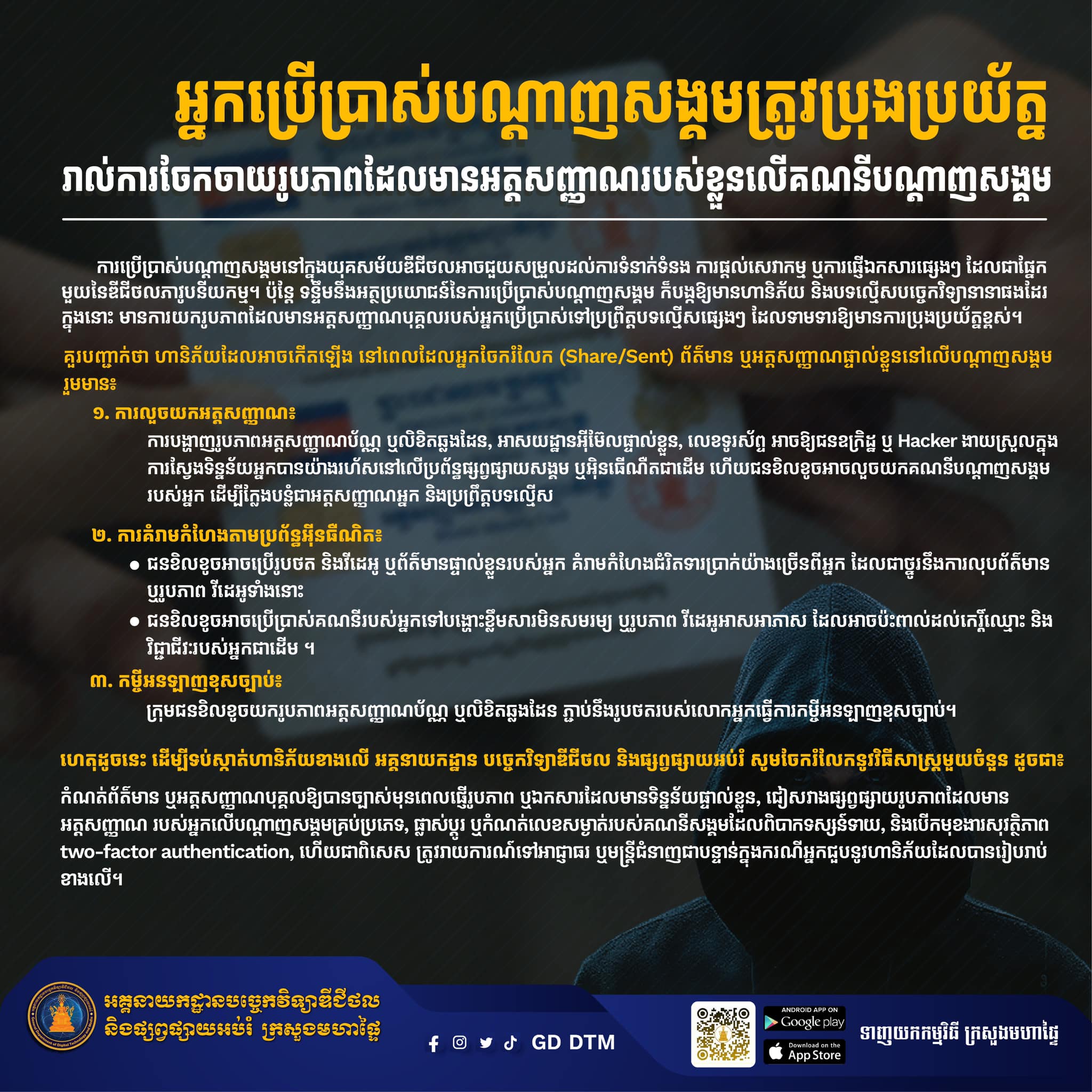 អ្នកប្រើប្រាស់បណ្ដាញសង្គម ត្រូវប្រុងប្រយ័ត្នរាល់ការចែកចាយរូបភាព ដែលមានអត្តសញ្ញាណរបស់ខ្លួនលើគណនីបណ្តាញសង្គម