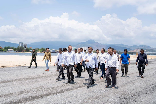 ខេត្តកំពត៖ យោងតាមការចុះផ្សាយរបស់ មន្ទីរព័ត៌មានខេត្តកំពត បានឱ្យដឹងថា នៅព្រឹកថ្ងៃទី៣ ខែមេសា ឆ្នាំ២០២៤ បន្ទាប់ពីបញ្ចប់ពិធីសម្ពោធដាក់ឱ្យប្រើប្រាស់ឧប្បដ្ឋានសាលាក្នុងវត្តយសសុវណ្ណអូរជុំព្រៃទន្លេ ក្នុងស្រុកបន្ទាយមាស ឯកឧត្តម ម៉ៅ ធនិន អភិបាលខេត្តកំពត បានបន្តចុះពិនិត្យវឌ្ឍនភាពនៃការស្ថាបនាផ្លូវឆ្នេរខ្សាច់កម្សាន្តប្របមាត់ព្រែកកំពង់បាយចាប់ពីស្ពានឥន្ទធនូ (ស្ពានចាស់) រហូតដល់ស្ពានកំពង់បាយ(ស្ពានថ្មី) និងរូបសំណាកសេះសមុទ្រមុខសាលាខេត្តចាស់។