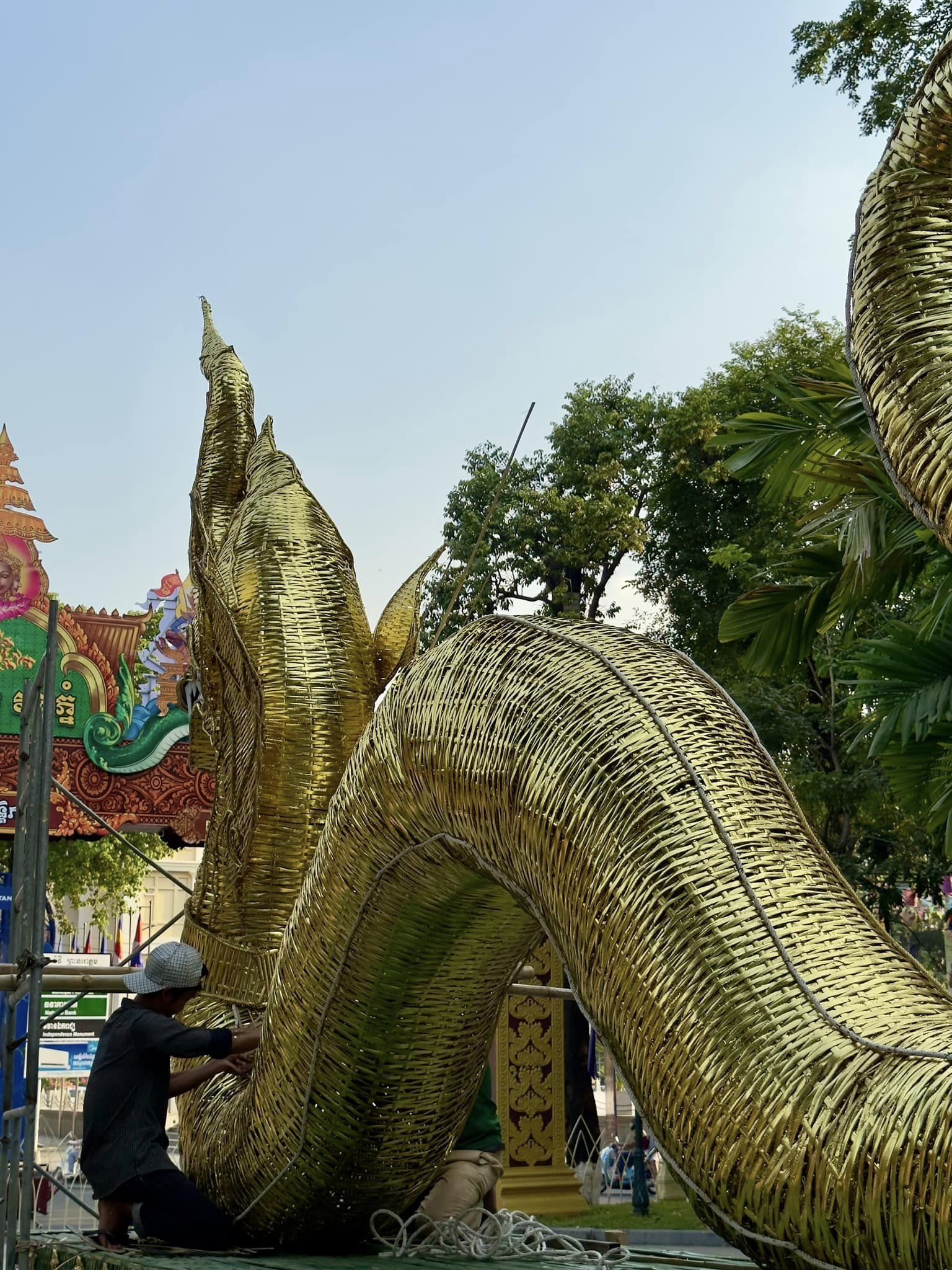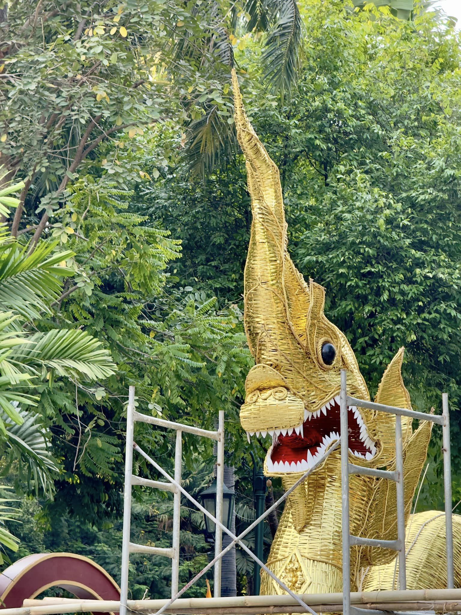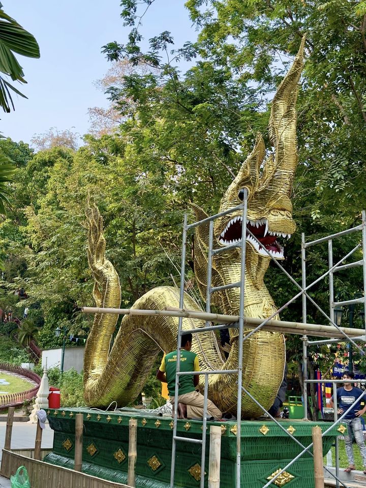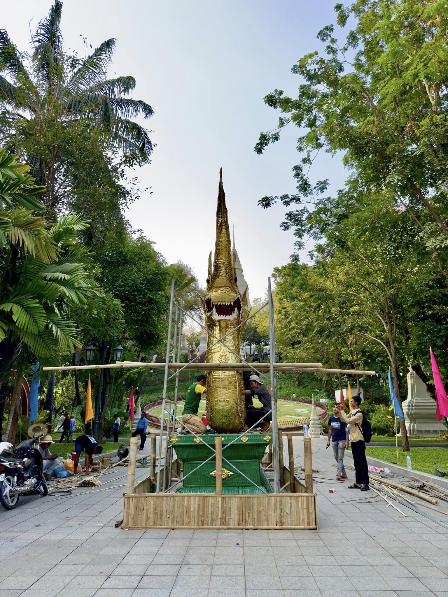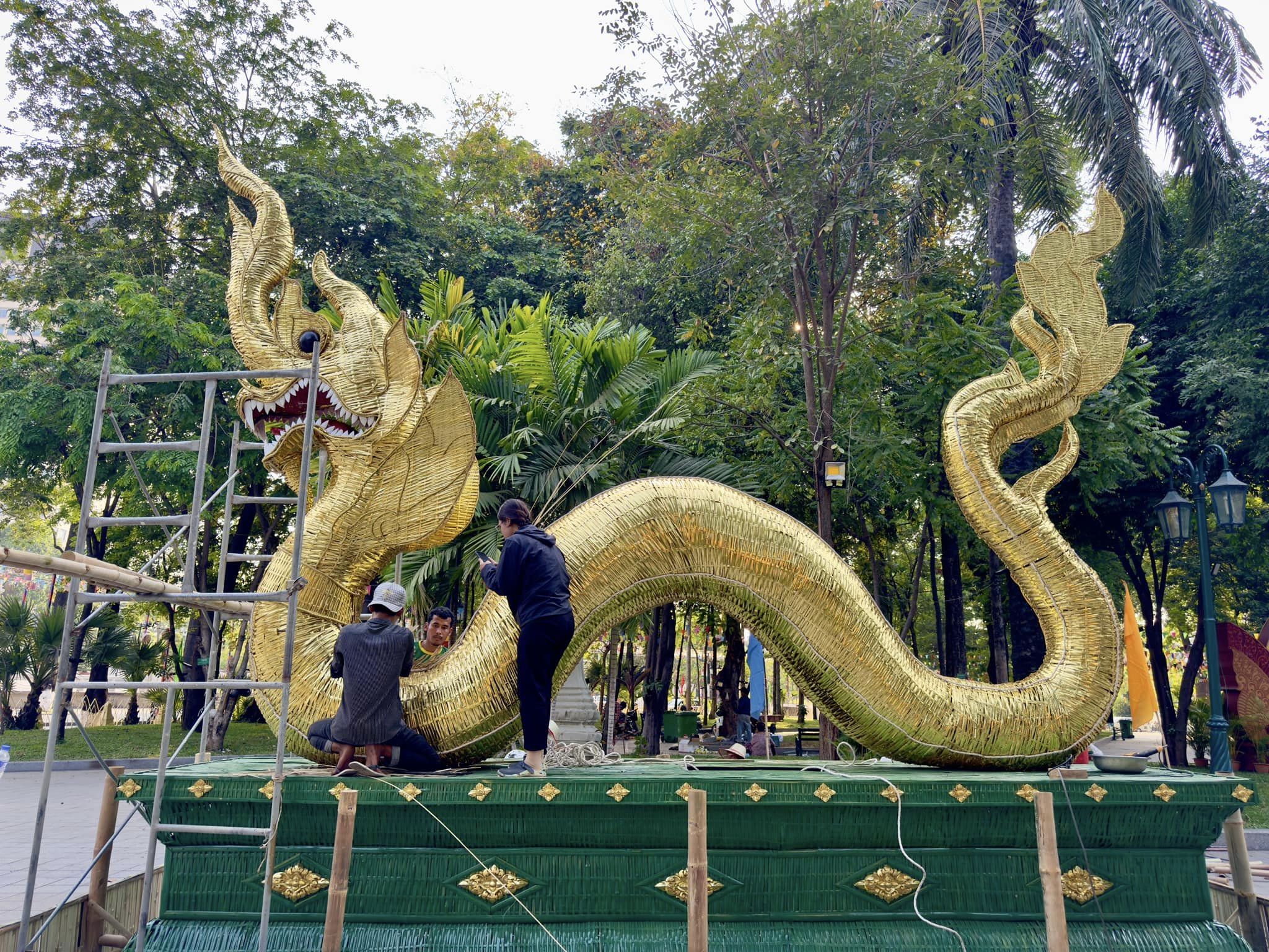 ស្អាតណាស់! ក្រុមការងារ កំពុងរៀបចំរូបនាគធ្វើពីឫស្សីលាបពណ៌មាសយ៉ាងស្រស់ស្អាត នៅរមណីយដ្ឋានវប្បធម៌ប្រវត្តិសាស្រ្តវត្តភ្នំ