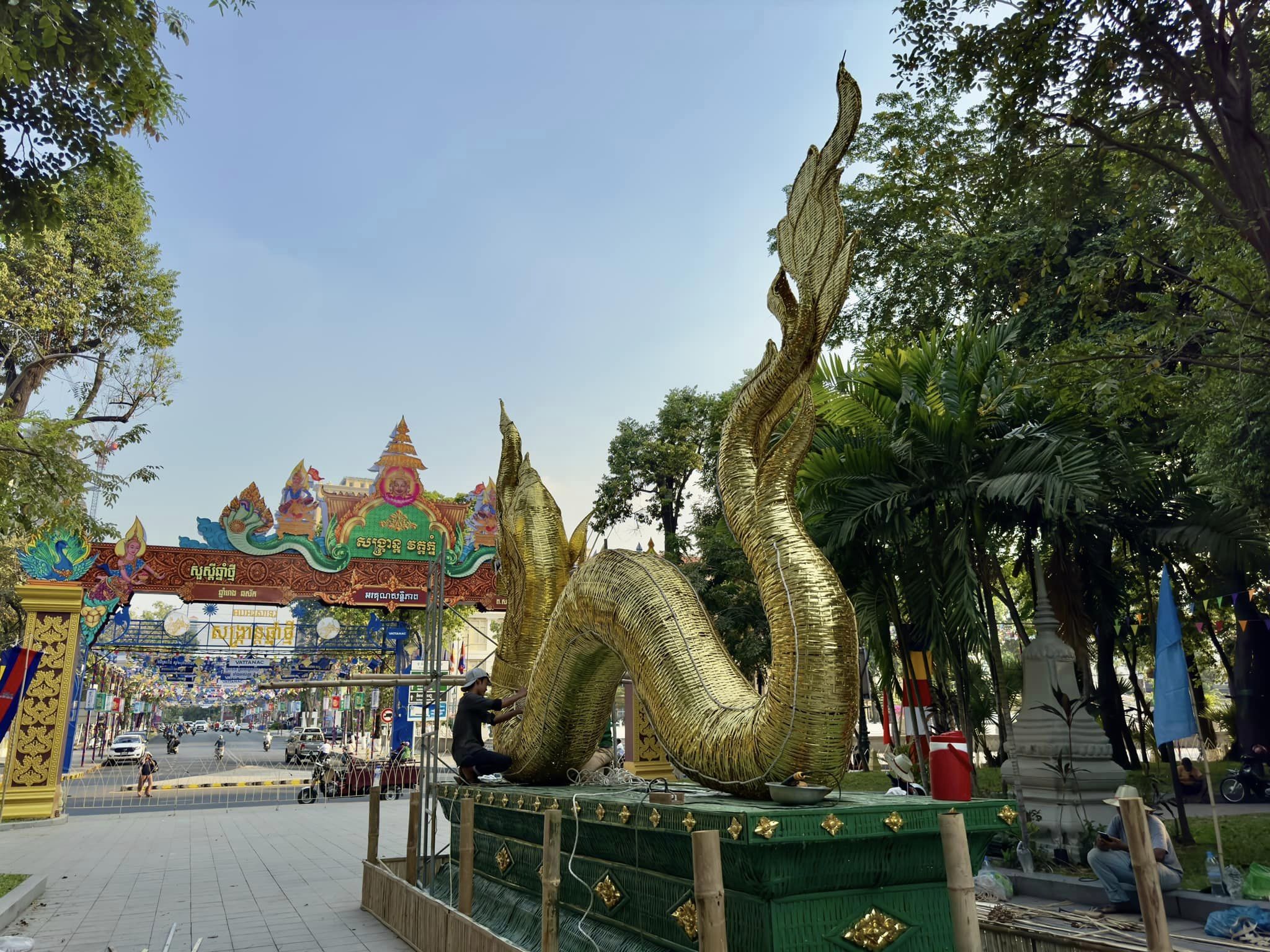 រាជធានីភ្នំពេញ៖ នៅថ្ងៃទី០៨ ខែមេសា ឆ្នាំ២០២៤ យោងតាមគណនីហ្វេសប៊ុកផ្ទាល់របស់ ឯកឧត្តម កើត ឆែ អភិបាលរង នៃគណៈអភិបាលរាជធានីភ្នំពេញ បានបង្ហាញពីសកម្មភាពរបស់ក្រុមការងាររៀបចំសង្ក្រាន្តវត្តភ្នំ ដែលកំពុងតែមមាញឹករៀបចំ រូបនាគធ្វើពីឫស្សីលាបពណ៌មាសយ៉ាងស្រស់ស្អាត នៅរមណីយដ្ឋានវប្បធម៌ប្រវត្តិសាស្រ្តវត្តភ្នំ។