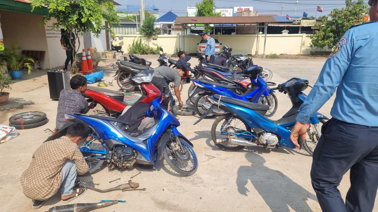 នគរបាលស្រុកស្វាយចេក កោះហៅម្ចាស់ម៉ូតូចំនួន ១៣គ្រឿង បំពាក់ស៊ីម៉ាំងប្រែន ដែលឃាត់ទុកកាលបុណ្យចូលឆ្នាំថ្មី យកមកអប់រំ