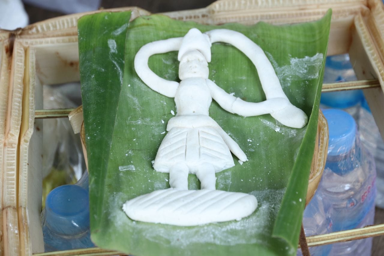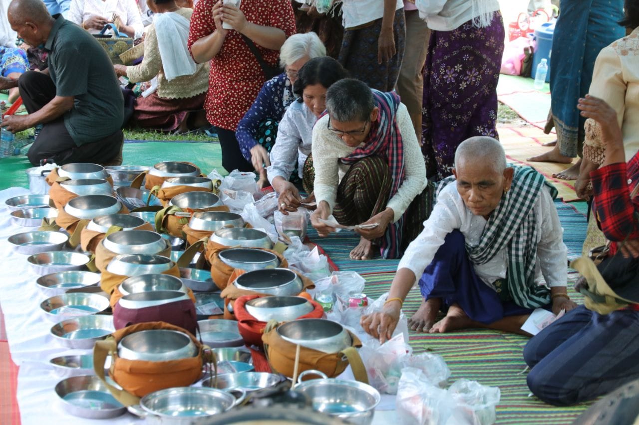 លុះដល់ព្រឹកស្អែក មានពិធីប្រគេនចង្ហាន់ព្រះសង្ឃ ពិធីរាប់បាត្រ និងពិធីប្រទក្សិណ៣ជុំដើម្បីចាក់ទឹកចូលក្នុងទ ដើម្បីបង្ហូរចេញពីអាងធំចូលទៅអាងតូចតាមទិសទាំង៤។ កំឡុងពេលដើរប្រទក្សិណនោះក៏មានការចាក់ និងជះទឹកដាក់គ្នាយ៉ាងអធិកអធម ដែលជាការនិមិត្តថាមានភ្លៀងធ្លាក់មកមែន។