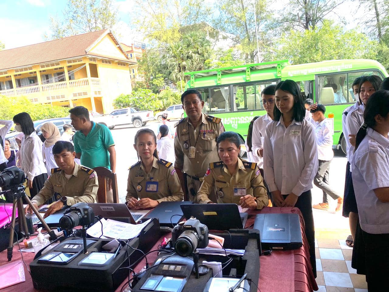ស្នងការនគរបាលខេត្តកំពត បានចាត់រថយន្តចល័តចុះធ្វើអត្តសញ្ញាណប័ណ្ណថ្មី នៅតាមសាលារៀន ជូនដល់សិស្សានុសិស្ស