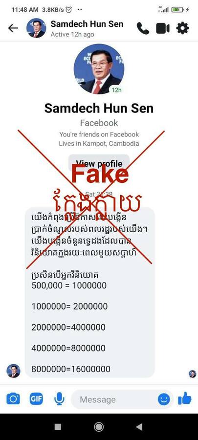 គណៈកម្មាធិការជាតិសម្របសម្រួលកិច្ចការព័ត៌មាន បង្ហាញជូននូវគណនីក្លែងក្លាយ ដែលយករូបសម្តេចតេជោ ហ៊ុន សែន ទៅប្រើប្រាស់