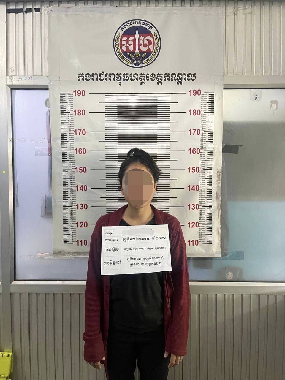 ដោយមានការដឹកនាំចង្អុលបង្ហាញផ្ទាល់ពីលោកឧត្តមសេនីយ៍មេបញ្ជាការខេត្ត និងមានការសម្របសម្រួលនីតិវិធីពីឯកឧត្តមព្រះរាជអាជ្ញាអមសាលាដំបូងខេត្ត កម្លាំងជំនាញកងរាជអាវុធហត្ថខេត្តកណ្តាល និងក្រុងតាខ្មៅ បានចុះដល់កន្លែងជាក់ស្តែង ឃាត់ខ្លួនជនសង្ស័យបានចំនួន ០១នាក់ ភេទស្រី យកមកអង្គភាពដើម្បីសាកសួរ។