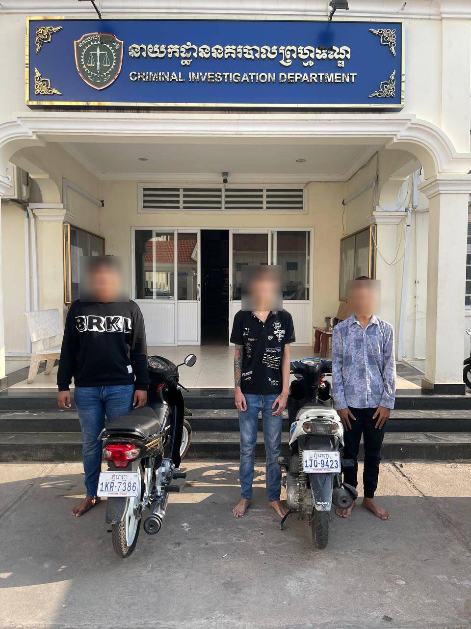ភ្លាមនោះកម្លាំងជំនាញការិយាល័យធ្វើការប្រដេញ និងឃាត់ខ្លួនជនសង្ស័យបាន០១នាក់ នៅចំណុចផ្លូវលេខ១៦៣ ក្នុងសង្កាត់អូឡាំពិក ខណ្ឌបឹងកេងកង និងបន្តប្រដេញឃាត់ជនសង្ស័យបានចំនួន០២នាក់ទៀត នៅចំណុចផ្លូវ៦០ម៉ែត្រ ក្នុងសង្កាត់ចាក់អង្រែលើ ខណ្ឌមានជ័យ រួមមាន៖