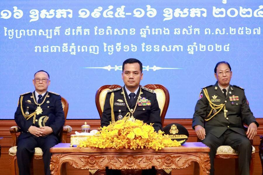 រាជធានីភ្នំពេញ៖ យោងតាមការចុះផ្សាយរបស់ ក្រសួងព័ត៌មាន បានឱ្យដឹងថា ក្នុងឱកាសអបអរសាទរខួបអនុស្សាវរីយ៍លើកទី៧៩ ថ្ងៃកំណើតនគរបាលជាតិកម្ពុជា ១៦ ឧសភា ១៩៤៥-១៦ ឧសភា ២០២៤! ក្នុងពិធីដែលប្រារព្ធឡើងយ៉ាងមហោឡារិក នៅទីស្ដីការក្រសួងមហាផ្ទៃ នាព្រឹកថ្ងៃទី១៦ ខែឧសភា ឆ្នាំ២០២៤ ឯកឧត្តម នាយឧត្តមសេនីយ៍ អភិសន្តិបណ្ឌិត ស សុខា ឧបនាយករដ្ឋមន្រ្តី រដ្ឋមន្រ្តីក្រសួងមហាផ្ទៃ តំណាងដ៏ខ្ពង់ខ្ពស់សម្ដេចមហាបវរធិបតី ហ៊ុន ម៉ាណែត នាយករដ្ឋមន្រ្តី នៃព្រះរាជាណាចក្រកម្ពុជា បានថ្លែងរម្លឹកដល់គុណូបការៈបុព្វបុរស រៀមច្បង យុទ្ធជន យុទ្ធនារី នគរបាលជាតិ គ្រប់ជំនាន់ដែលបានតស៊ូឆ្លងកាត់រាល់ការប្រែប្រួលដ៏ស្មុគ្រស្មាញ នៃនិន្នាការសង្គម បង្កើតបាននូវសមិទ្ធផលជាច្រើនឥតគណនា ដើម្បីបុព្វហេតុសន្តិសុខជាតិ និងភាពសុខក្សេមក្សាន្តរបស់ប្រជាជន។