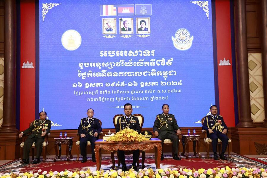 ក្នុងឱកាសនោះដែរ ប្រមុខក្រសួងមហាផ្ទៃកម្ពុជា បានបញ្ជាក់ទៅកាន់ថ្នាក់ដឹកនាំជាន់ខ្ពស់នគរបាលជាតិ ថា ទិវាខួបអនុស្សាវរីយ៍ជាប្រវត្តិសាស្រ្ត លើកទី៧៩ នៃការចាប់បដិសន្ធិអង្គប្រតិបត្តិច្បាប់នគរបាលជាតិកម្ពុជា ដែលប្រសូត្រចេញពីស្នាព្រះហស្តរបស់ព្រះករុណា ព្រះបាទសម្ដេចព្រះ នរោត្តម សីហនុ ព្រះមហាវីរក្សត្រ ព្រះបរមរតនកោដ្ឋ ហើយការប្រារព្ធខួបអនុស្សាវរីយ៍ នាពេលនេះ ក៏ស្របពេលដែលរាជរដ្ឋាភិបាលកម្ពុជា នីតិកាលទី៧ នៃរដ្ឋសភា បាន និងកំពុងឈរជើងយ៉ាងរឹងមាំ ធ្វើដំណើរប្រកបដោយភាពស្វាហាប់ និងជាពិសេសបានត្រៀមលក្ខណៈគ្រប់បែបយ៉ាង ដើម្បីឆ្លើយតបទៅនឹងបញ្ហាប្រឈមនានា ក្រោមការដឹកនាំរបស់សម្ដេចមហាបវរធិបតី ហ៊ុន ម៉ាណែត នាយករដ្ឋមន្រ្តី នៃកម្ពុជា។