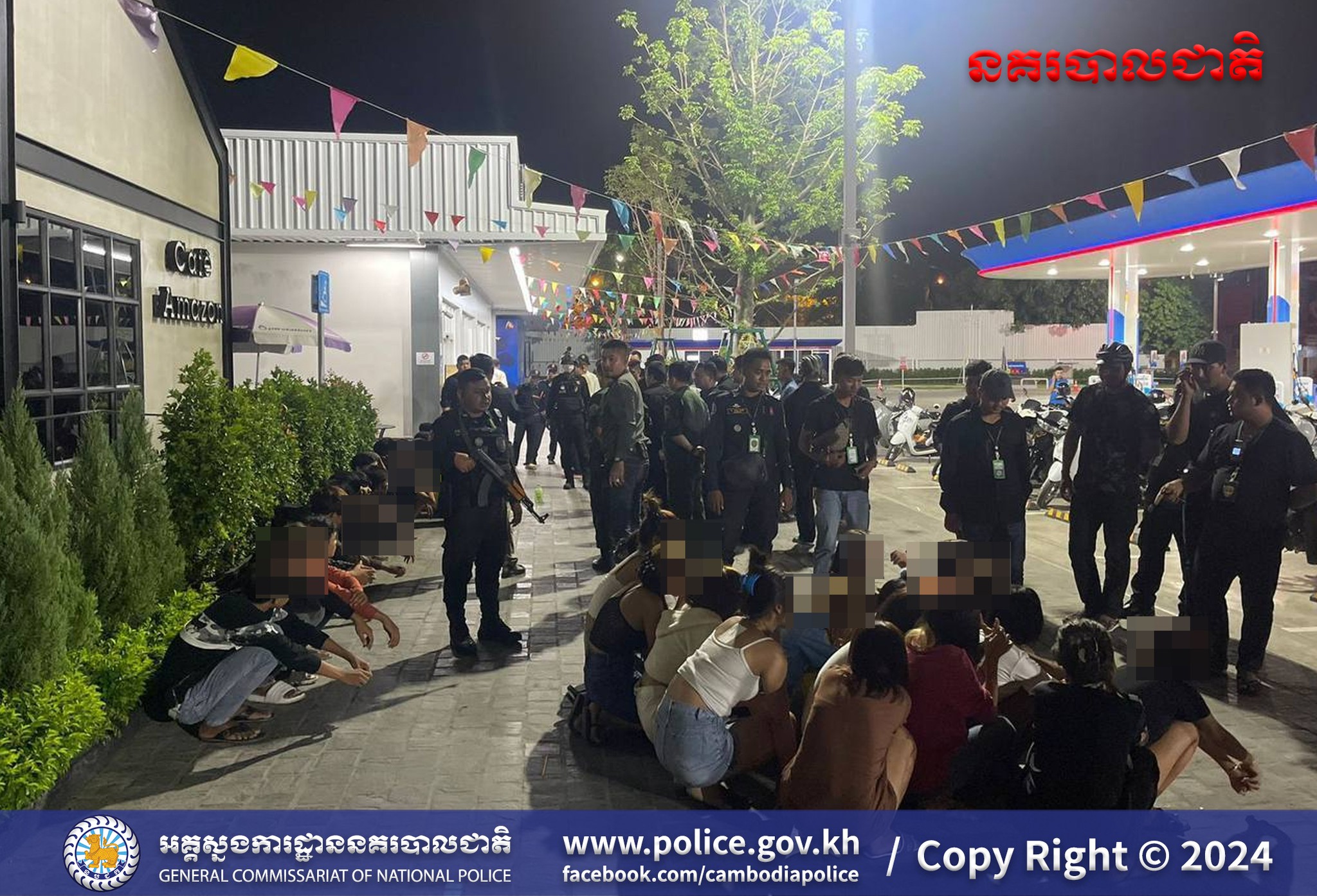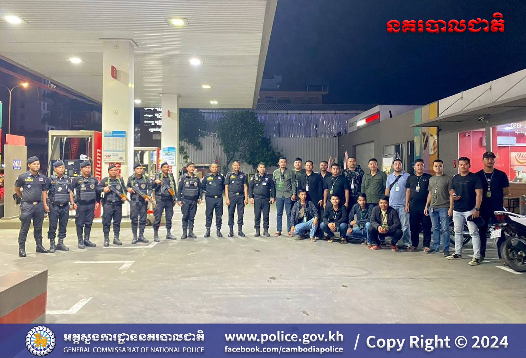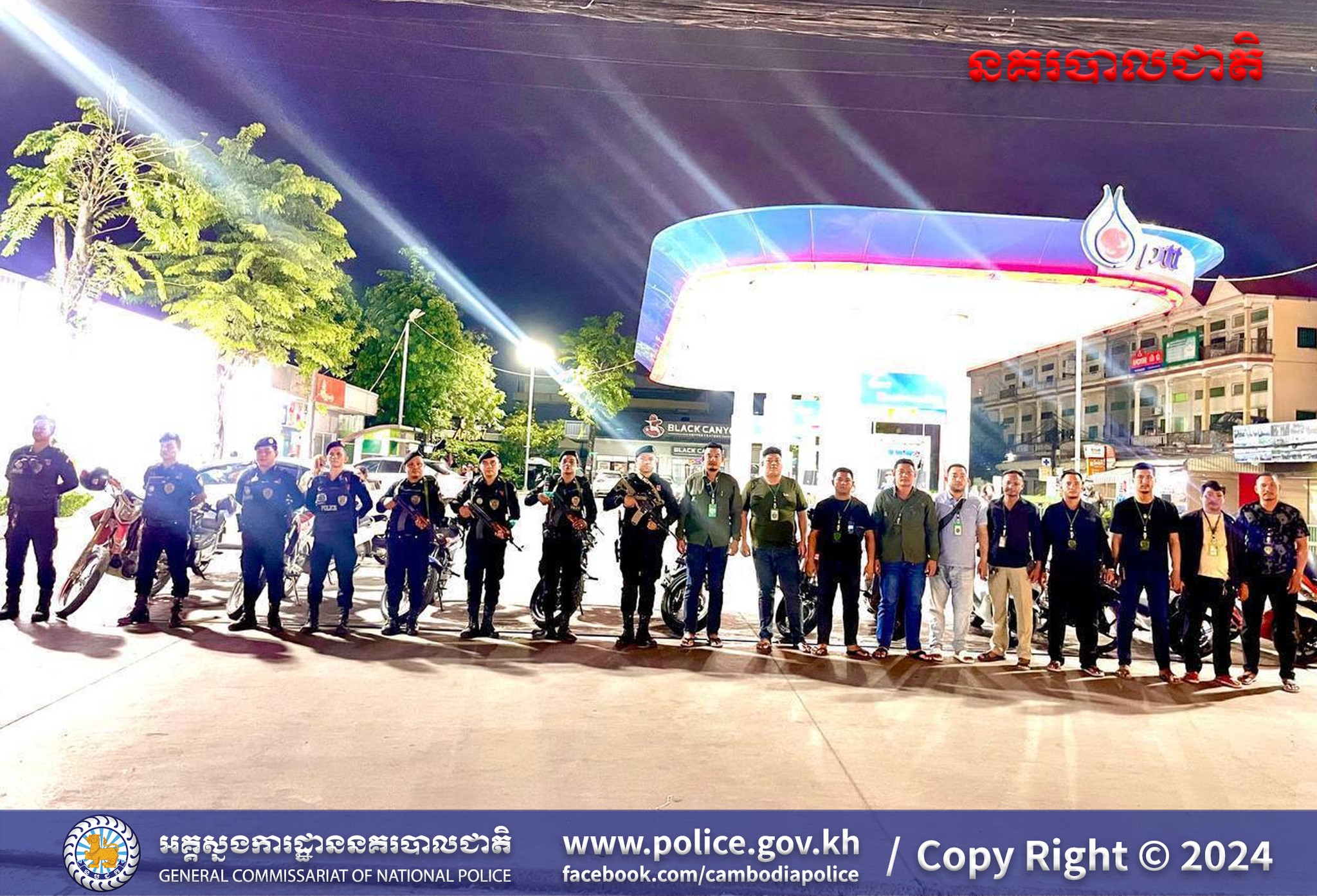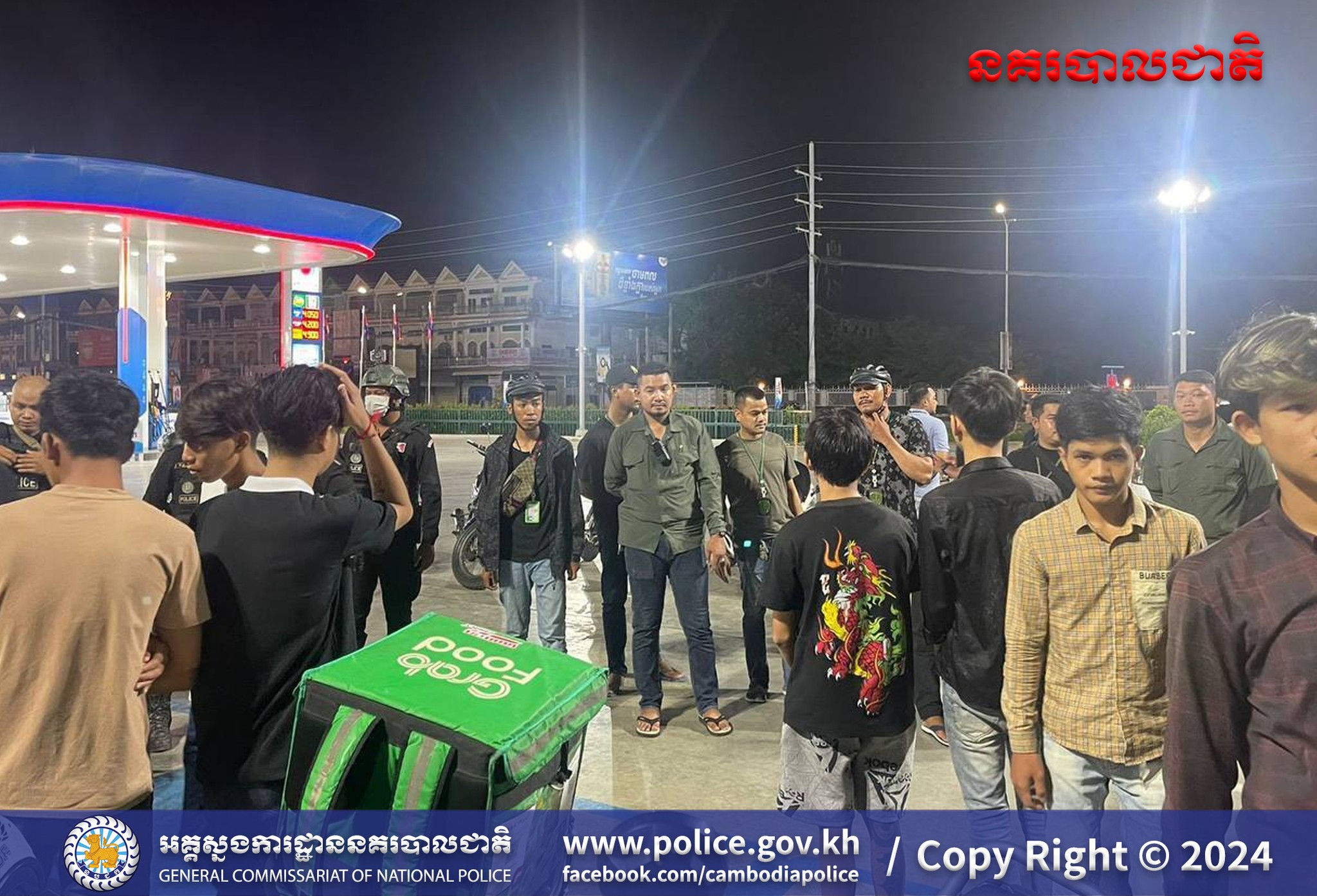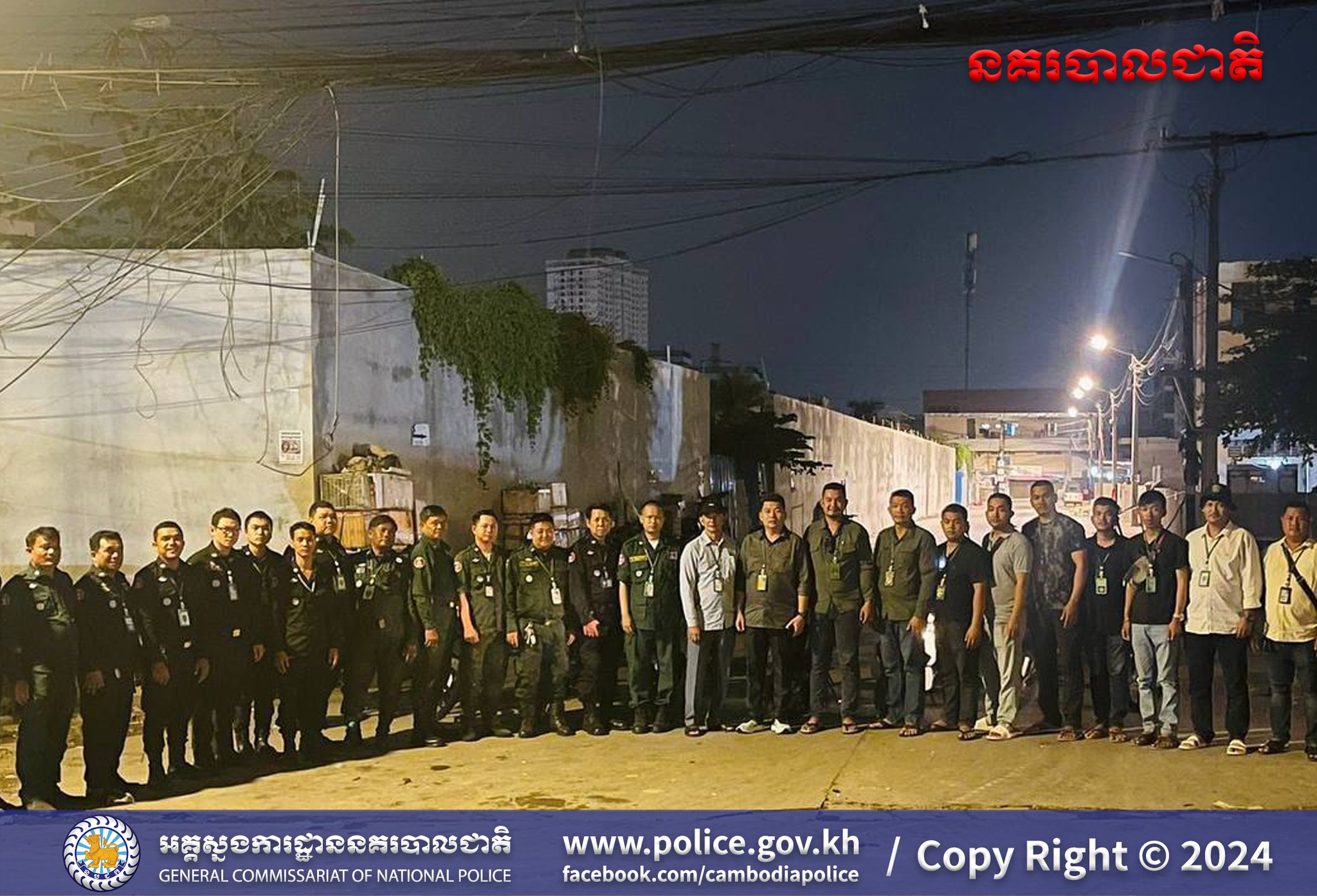 រាជធានីភ្នំពេញ៖ យោងតាមការចុះផ្សាយរបស់ អគ្គស្នងការដ្ឋាននគរបាលជាតិ បានឱ្យដឹងថា ដោយអនុវត្តតាមបទបញ្ជារបស់ថ្នាក់ដឹកនាំ ពិសេសឯកឧត្តម ឧត្តមសេនីយ៍ឯក ង៉េង ជួ ប្រធាននាយកដ្ឋាននគរបាលព្រហ្មទណ្ឌ, នៅយប់ថ្ងៃទី២៣ ខែឧសភា ឆ្នាំ២០២៤ កម្លាំងការិយាល័យព្រហ្មទណ្ឌកម្រិតស្រាល ដឹកនាំដោយលោកវរសេនីយ៍ឯក ឡេង ប៊ុនហួរ នាយការិយាល័យ បានចុះល្បាតក្នុងភូមិសាស្ដ្រខណ្ឌមានជ័យ រាជធានីភ្នំពេញ ដើម្បីបង្ការ ទប់ស្កាត់ និងបង្ក្រាបនូវរាល់សកម្មភាពក្មេងទំនើងឱ្យបានម៉ឺងម៉ាត់។