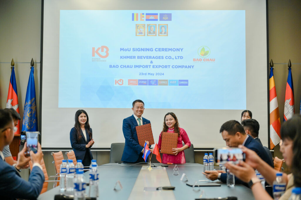 (ភ្នំពេញ)៖ ផលិតផល «Made in Cambodia» ស្តង់ដារគុណភាពពិភពលោករបស់ក្រុមហ៊ុន ខ្មែរ ប៊ែវើរីជីស បន្តវាយលុកទីផ្សារក្នុងតំបន់អាស៊ីអាគ្នេយ៍ជាហូរហែ ដែលថ្មីៗនេះ ខ្មែរ ប៊ែវើរីជីស ទើបតែចុះហត្ថលេខាលើអនុស្សារណៈនៃការយោគយល់គ្នាជាមួយក្រុមហ៊ុនវៀតណាម BAO CHAU Import Export ដើម្បីសុំសិទ្ធនាំយកផលិតផលរបស់ ខ្មែរ ប៊ែវើរីជីស ទៅដាក់លក់នៅលើទីផ្សាររបស់ខ្លួន កាលពីថ្ងៃទី២៣ ខែឧសភា ឆ្នាំ២០២៤ នេះ។