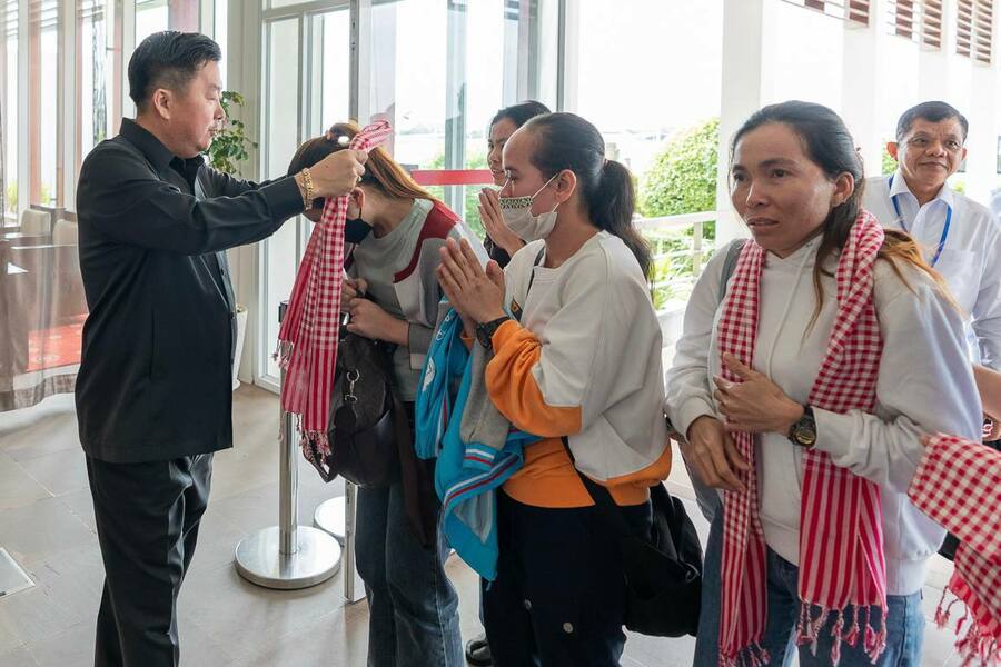 ក្រសួងការងារ និងបណ្តុះបណ្តាលវិជ្ជាជីវៈ បានទទួលយ៉ាងកក់ក្តៅចំពោះការមកដល់របស់ពលការិនីតាំងពីការសម្របសម្រួលនៅព្រលានយន្តហោះក្នុងព្រះរាជាណាចក្រថៃ រហូតមកដល់ព្រលានយន្តហោះអន្តរជាតិភ្នំពេញ និងនៅទីស្តីការក្រសួង។