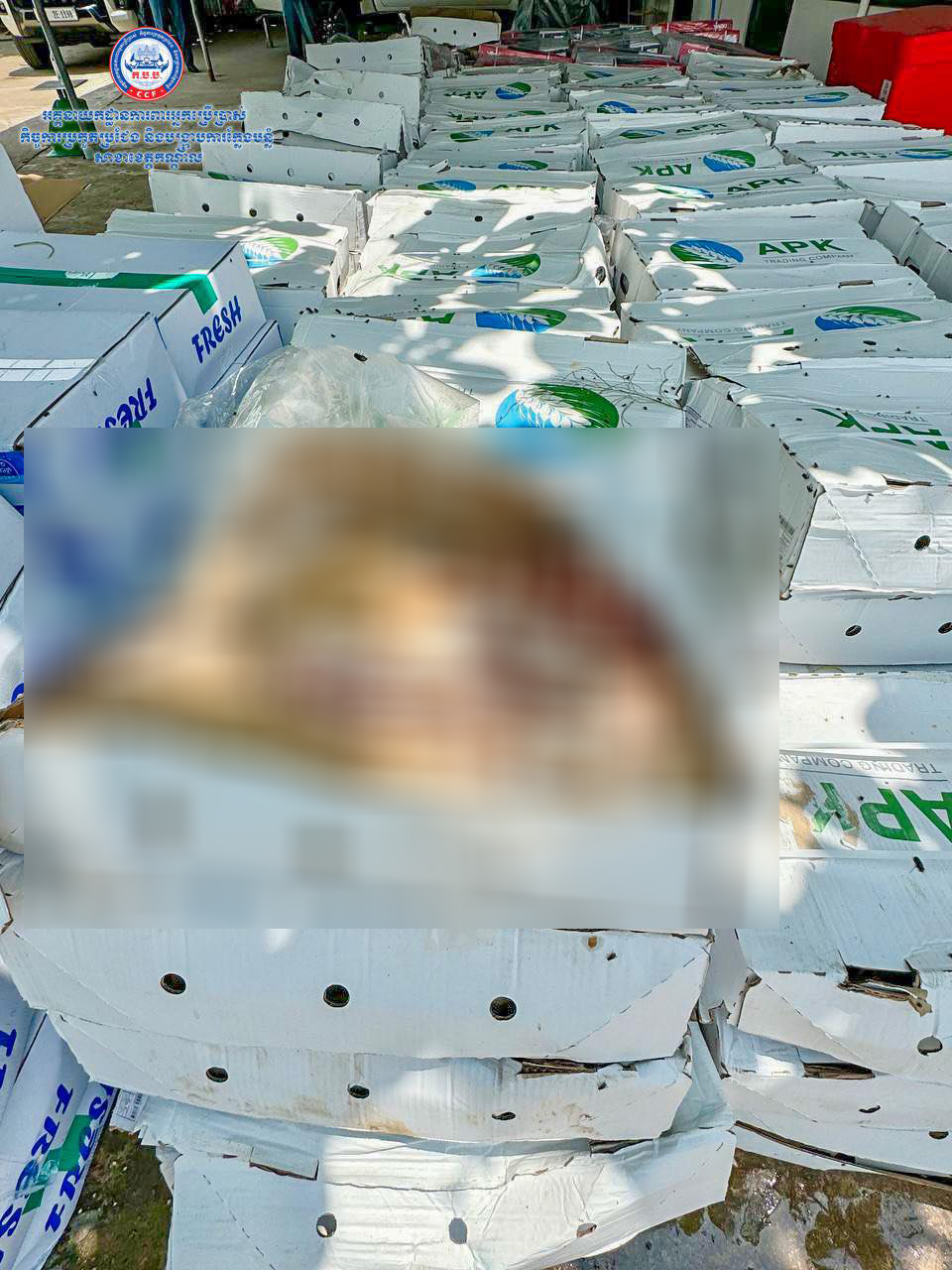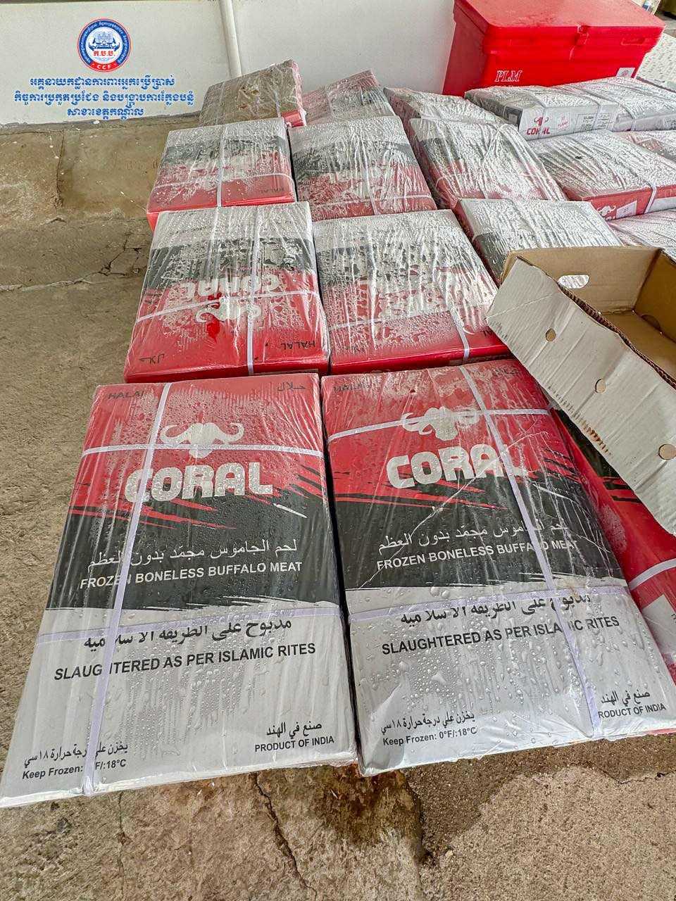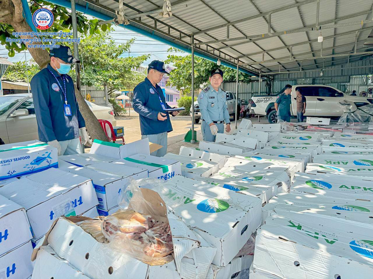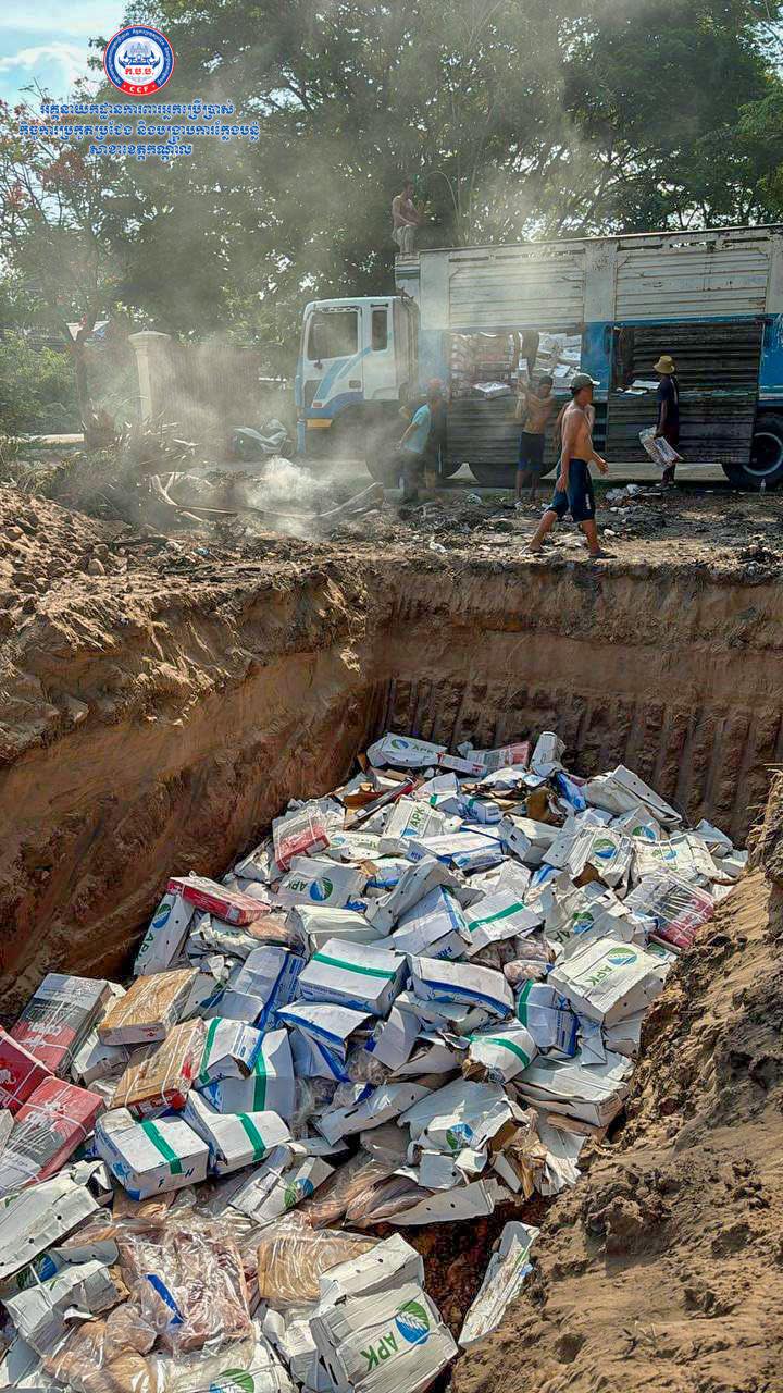 ដោយក្នុងនោះមន្រ្តីជំនាញបានរកឃើញថា សាច់ក្របីបង្កក ម៉ាក CORAL ចំនួន ១០០កេស (១កេស=២១គីឡូក្រាម) =២១០០គីឡូក្រាម (ប្រភពប្រទេសឥណ្ឌា) សាច់ជ្រូកបង្កកម៉ាក APK ចំនួន២០០កេស (១កេស=១៧គីឡូក្រាម) =៣៤០០គីឡូក្រាម (ប្រភពប្រទេសរុស្សី) មឹកបង្កប ម៉ាក FRESH ចំនួន៥០កេស (១កេស=១១គីឡូក្រាម)=៥៥០គីឡូក្រាម (ប្រភពប្រទេសចិន) សរុបចំនួន ៦០៥០គីឡូក្រាម ដឹកជញ្ជូនមិនត្រឹមត្រូវតាមលក្ខណៈស្តង់ដារបច្ចេកទេស ហើយសាច់បង្កកទាំងនោះបានខូចគុណភាពទៅហើយ។