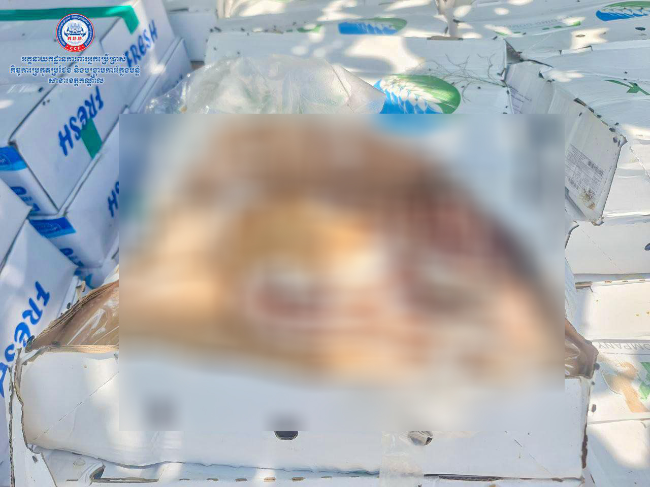 ខេត្តកណ្ដាល៖ យោងតាមការចុះផ្សាយរបស់ អគ្គ.ការពារអ្នកប្រើប្រាស់ កិច្ចការប្រកួតប្រជែង និងបង្ក្រាបការក្លែងបន្លំ បានឱ្យដឹងថា មន្រ្តីជំនាញ ក.ប.ប. សាខាខេត្តកណ្ដាល ចូលរួមសហការជាមួយសាខាគយ និងរដ្ឋាករខេត្តកណ្ដាល ឃាត់និងចាប់បានសាច់បង្កកនាំចូលបានប្រមាណជាង ៦តោន។