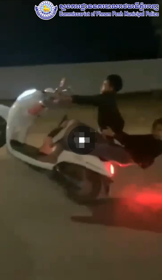 រាជធានីភ្នំពេញ៖ យោងតាមការចុះផ្សាយរបស់ ក្រុមការងារព័ត៌មាន និងប្រតិកម្មរហ័ស នៃស្នងការដ្ឋាននគរបាលរាជធានីភ្នំពេញ បានឱ្យដឹងថា នៅថ្ងៃទី២៧ ខែឧសភា ឆ្នាំ២០២៤ វេលាម៉ោង១៨និង៣០នាទី កម្លាំងប៉ុស្ដិ៍នគរបាលរដ្ឋបាលពញាពន់ នៃអធិការដ្ឋាននគរបាលខណ្ឌព្រែកព្នៅ បានធ្វើការល្បាតបង្កា និងបង្ក្រាបបទល្មើសក្នុងមូលដ្ឋាន រហូតដល់ចំណុចផ្លូវ១៥១ ភូមិបឹង សង្កាត់ពញាពន់ ខណ្ឌព្រែកព្នៅ រាជធានីភ្នំពេញ ក៏ប្រទះឃើញក្មេងទំនើងចំនួន ០២នាក់ កំពុងធ្វើសម្មភាពបង្ហោះម៉ូតូ ភ្លាមនោះកម្លាំងសមត្ថកិច្ចយើងក៏បានហៅក្មេងទំនើងទាំង ០២នាក់ មកប៉ុស្តិ៍នគរបាលរដ្ឋបាលពញាពន់ ដើម្បីធ្វើការអប់រំ។