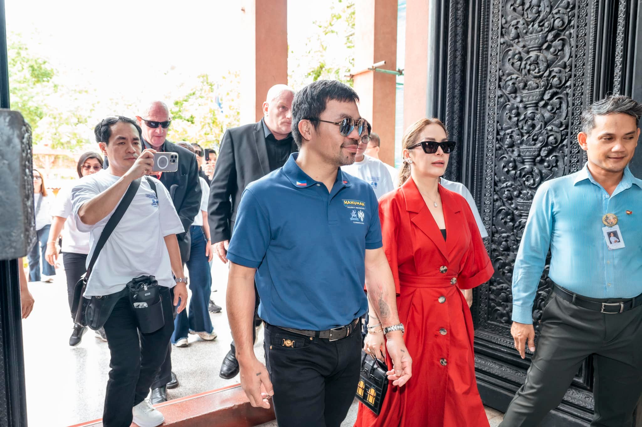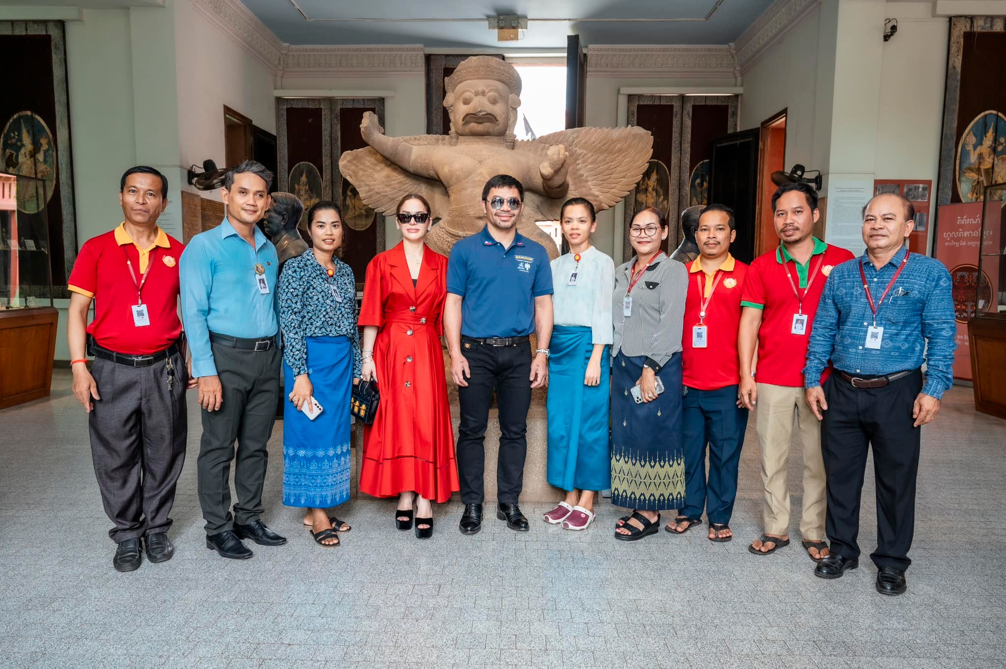 រាជធានីភ្នំពេញ៖ យោងតាមការចុះផ្សាយរបស់ ក្រសួងវប្បធម៌ និងវិចិត្រសិល្បៈ បានឱ្យដឹងថា នៅថ្ងៃទី៣១ ខែឧសភា ឆ្នាំ២០២៤ លោក ម៉ានី ផាកគីអាវ (Manny Pacquiao) កំពូលកីឡាករប្រដាល់ និងជាអតីតសមាជិកព្រឹទ្ធសភានៃប្រទេសហ្វ៊ីលីពីន និងភរិយារបស់លោក បានអញ្ជើញចូលទស្សនាសារមន្ទីរជាតិ ក្នុងគោលបំណងសិក្សាស្វែងយល់អំពីសិល្បៈសម្បត្តិវប្បធម៌របស់កម្ពុជា ដែលបានរក្សាទុកនៅក្នុងសារមន្ទីរជាតិ។
