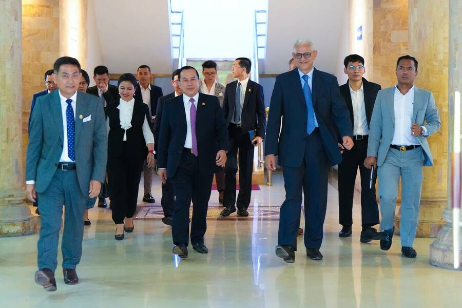 ជាកិច្ចចាប់ផ្តើម ឯកឧត្តមរដ្ឋមន្រ្តី បានសម្តែងក្ដីសោមនស្សរីករាយ និងស្វាគមន៍លោក Marcos Bianchi នាយកគ្រប់គ្រងកម្មវិធីប្រគំតន្រ្តីរបស់លោក Andrea Bocelli និងសហការី មកកាន់ទីស្ដីការក្រសួង ដើម្បីជួបពិភាក្សាការងារ និងជម្រាបពីគម្រោងរៀបចំកម្មវិធីប្រគំ STARS ASIA TOUR 2025-2026 របស់សិល្បករអ៊ីតាលីដ៏ល្បីល្បាញលោក Andrea Bocelli នៅប្រទេសកម្ពុជា។